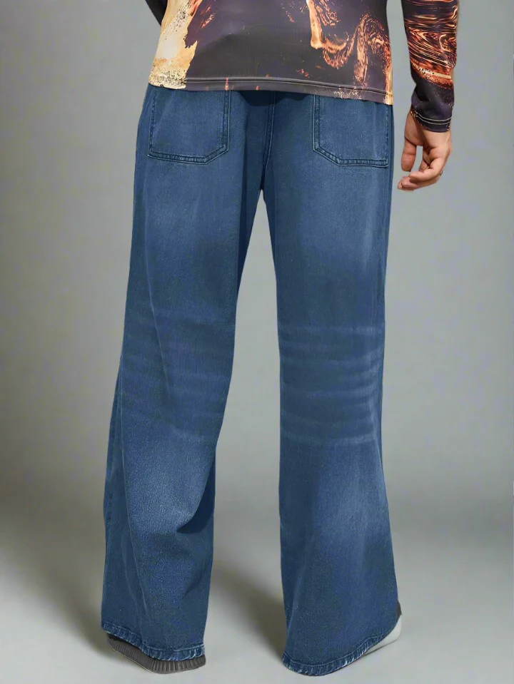 El color azul oscuro de estos baggy jeans los convierte en una pieza versátil para tu guardarropa. Combínalos con una t-shirt para un look casual, o eleva tu outfit con una camisa para ocasiones más formales. Sea cual sea tu estilo, estos jeans se adaptan a ti.
