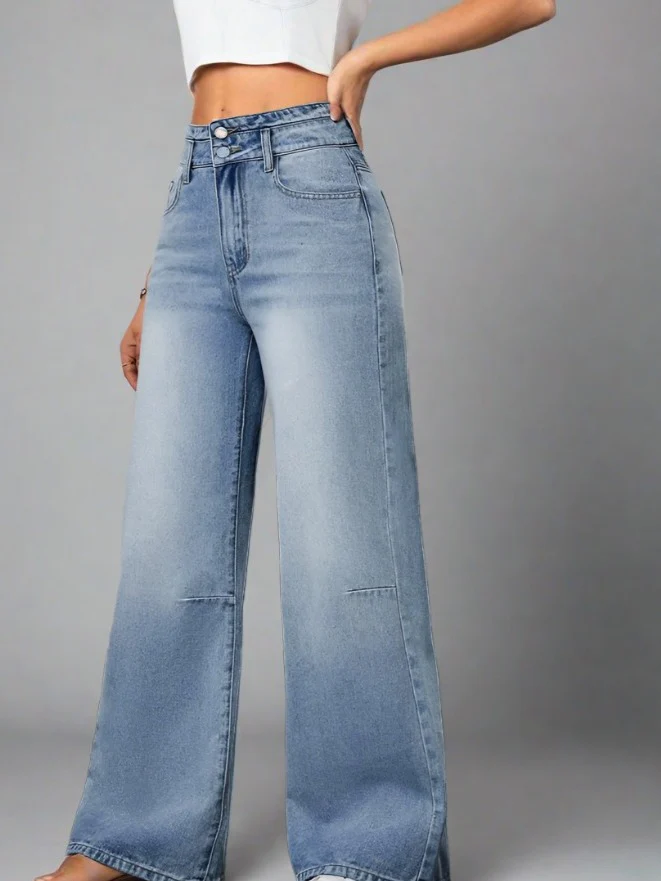 El color azul claro de estos pantalones de mezclilla de mujer es versátil y elegante, ideal para crear combinaciones de ropa casual. Su estilo de jeans holgado ofrece una libertad de movimiento excepcional, manteniendo un look refinado y a la moda.