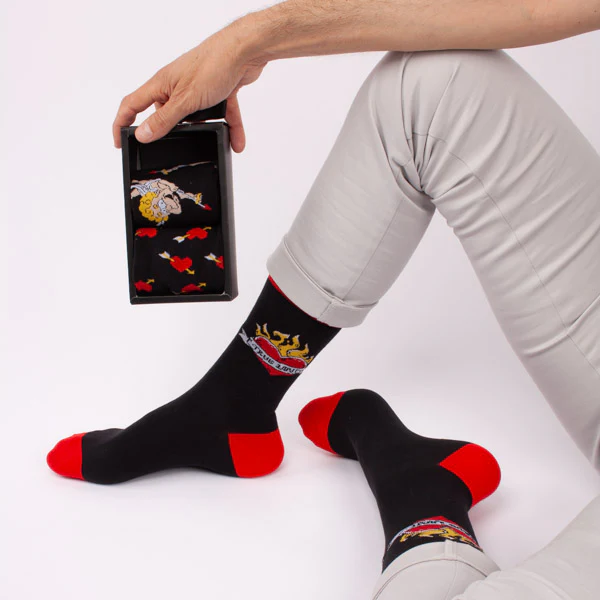 Esta caja de regalo es la sorpresa perfecta, original y cariñosa para tu cita. Los tres pares de calcetines son cómodos, perfectamente ajustados y presentan un diseño alegre y amoroso.