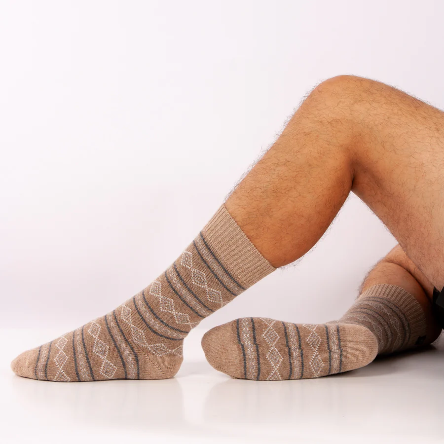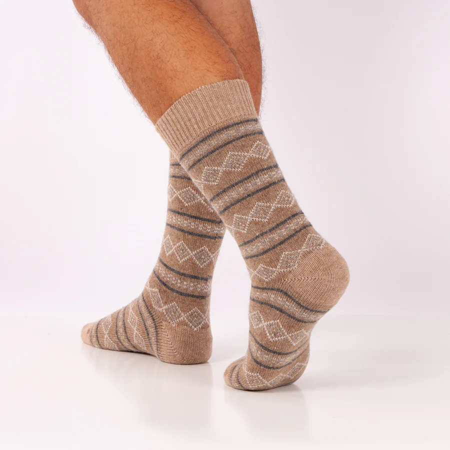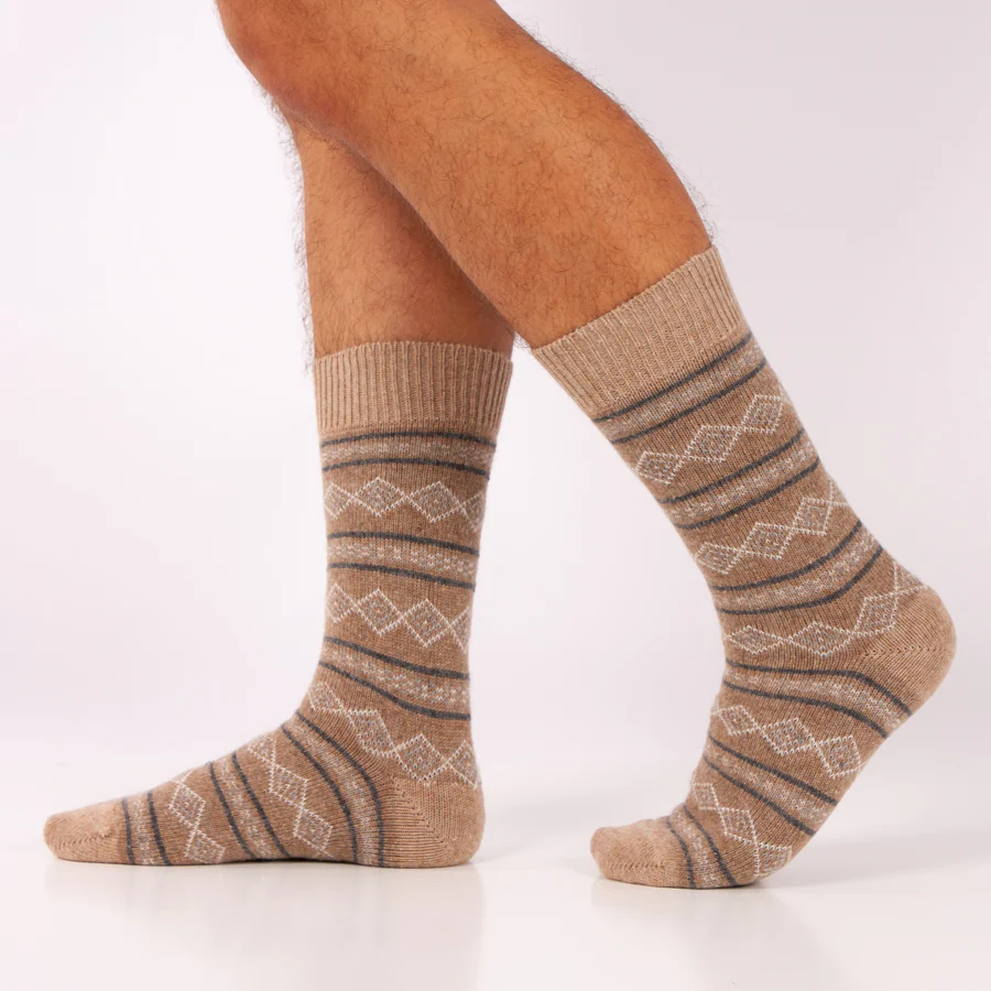 Disfrute de estos calcetines de casa tejidos maravillosamente cálidos y cómodos. El fino patrón jacquard le da a sus pies un aspecto cálido y alegre. Estos calcetines son maravillosamente cálidos e ideales para usar en casa, ya sea relajándose en el sofá o en la cama.