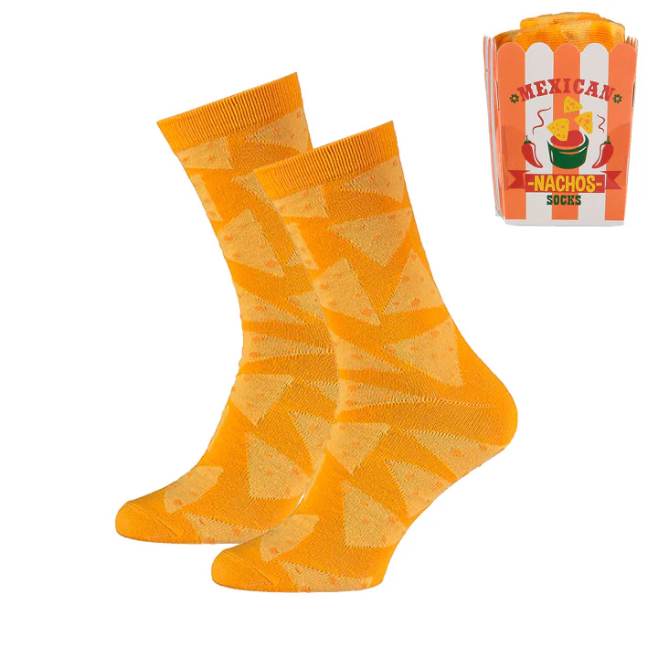 Perfectas para los amantes de los nachos. Los calcetines de algodón tienen un ajuste cómodo y un diseño divertido. Gracias al dibujo original de la caja, estos calcetines hacen un regalo increíble y único.