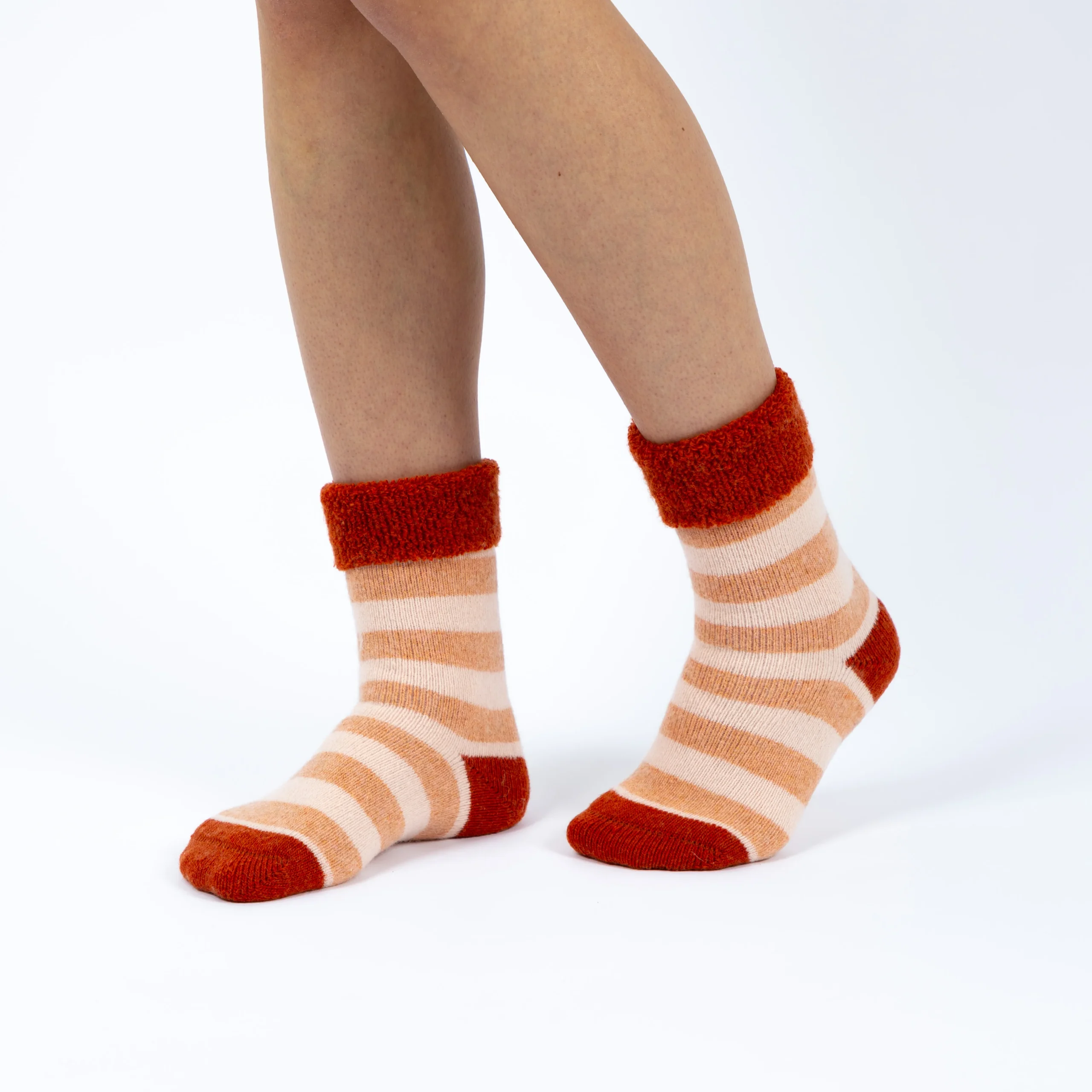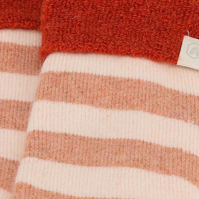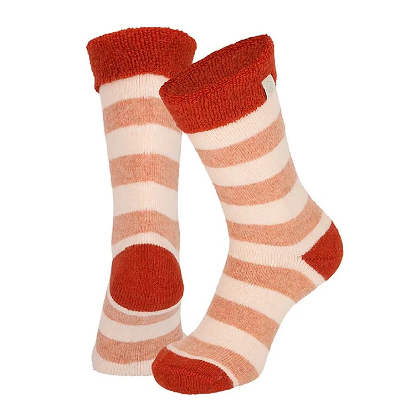Disfruta de estos calcetines de casa de lana maravillosamente tejidos, cálidos y cómodos. El patrón a rayas de colores le da a tus pies un aspecto cálido y alegre. Estos calcetines son increíblemente cálidos e ideales para usar en casa, mientras te relajas en el sofá o en la cama.