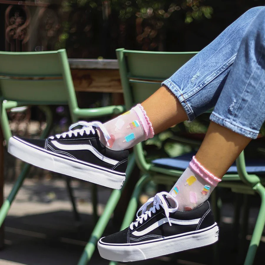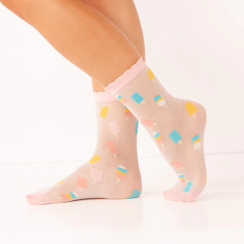 Pack de 1 par de calcetines transparentes con estampado de helados.