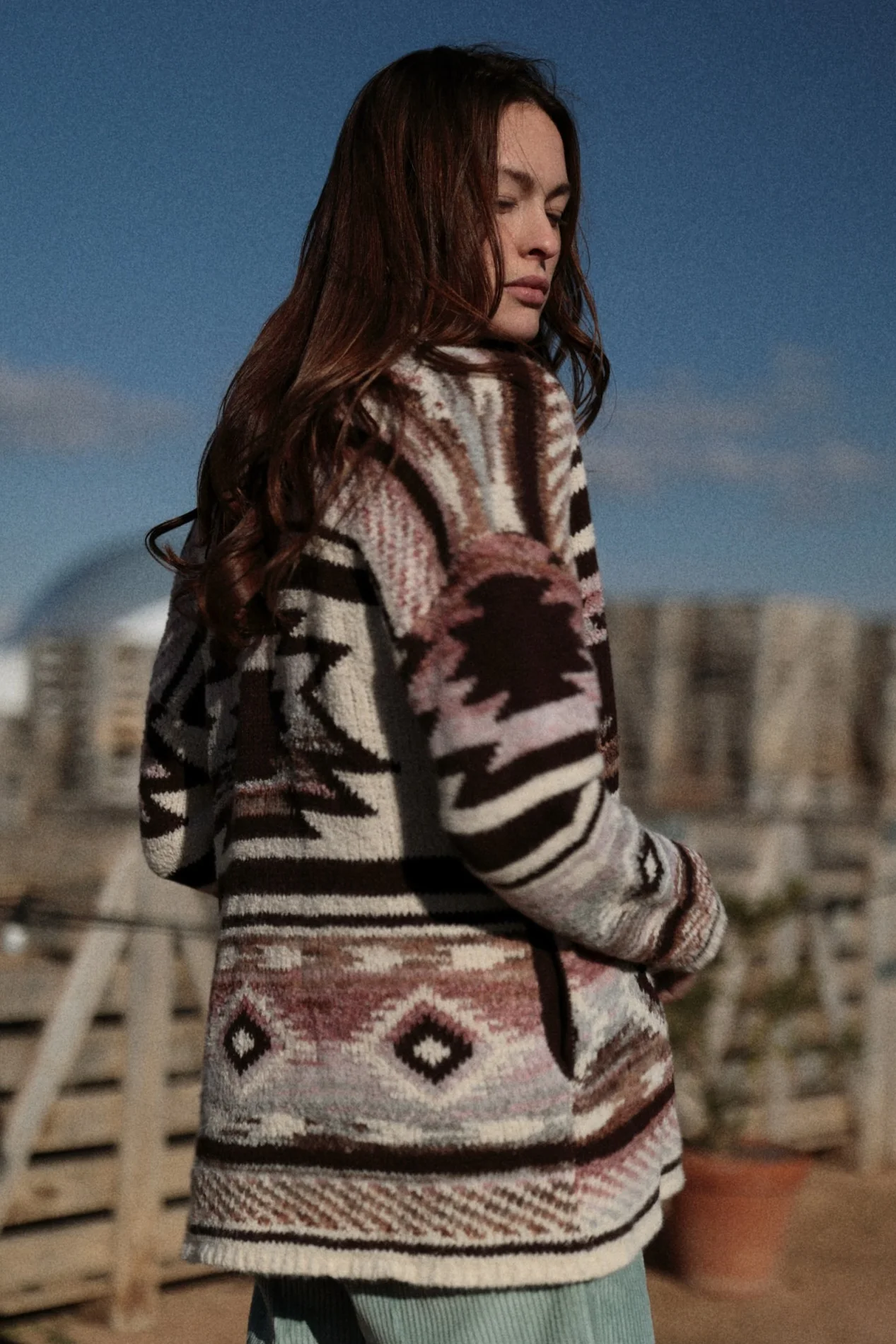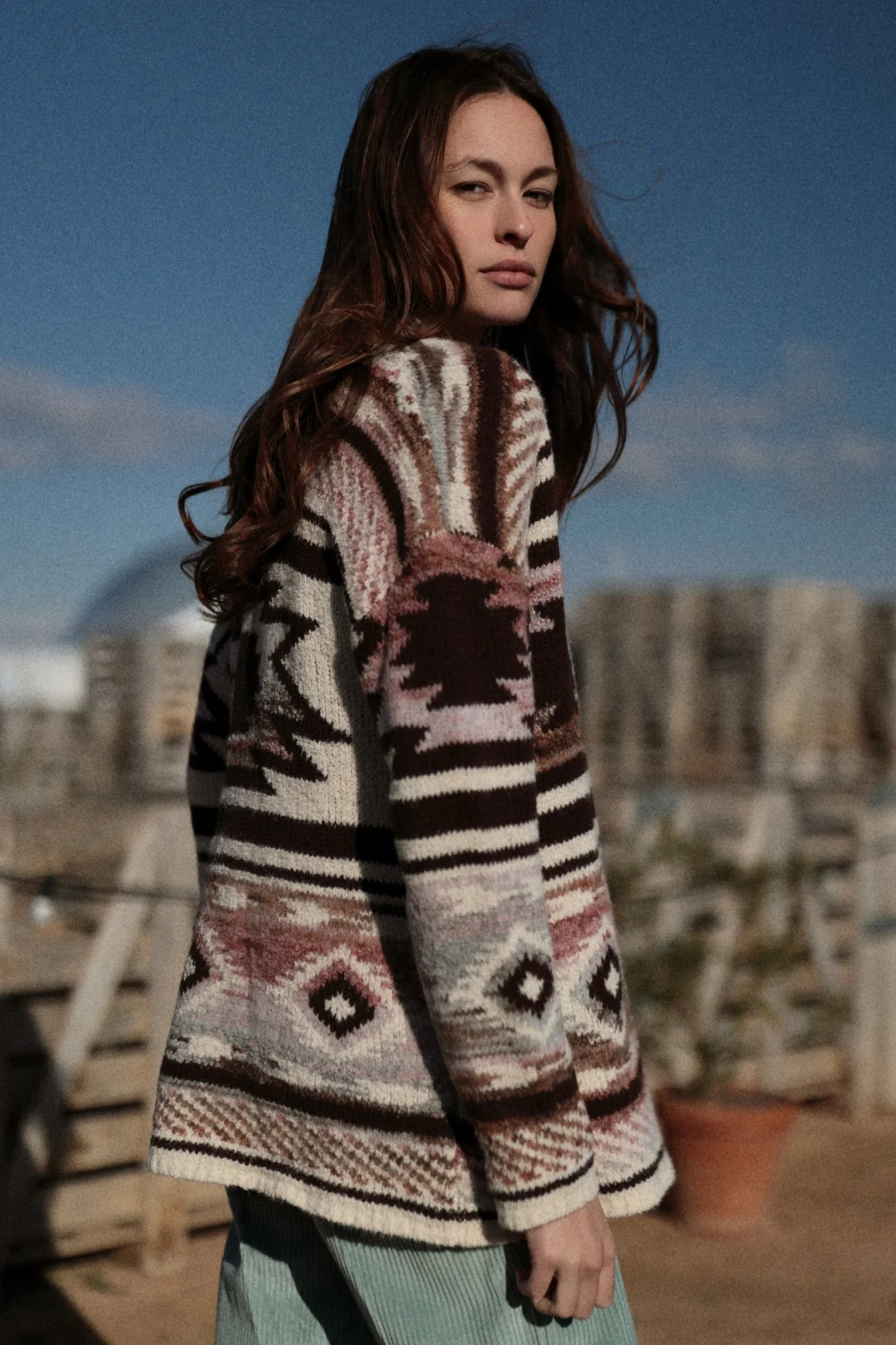 ¡A statement piece! La chaqueta de punto Sierra NJ27. Diseñada para quienes buscan destacar con un look relajado pero lleno de carácter, combina tonos tierra con acentos en rosa para una vibra cálida y chic.