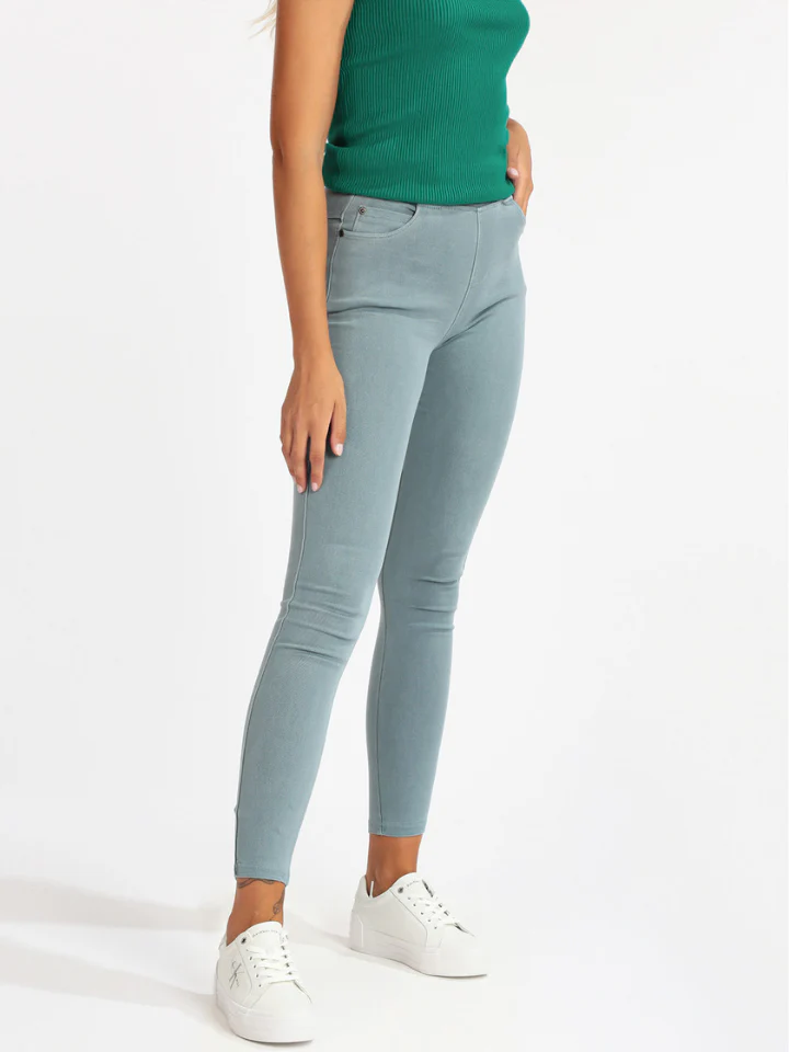 Descubre los «Skyline Skinny Jeans», perfectos para un estilo relajado y chic. Su tono azul claro recuerda la tranquilidad del cielo, diseñados para ajustarse cómodamente desde la cadera hasta el tobillo, definiendo una silueta contemporánea.