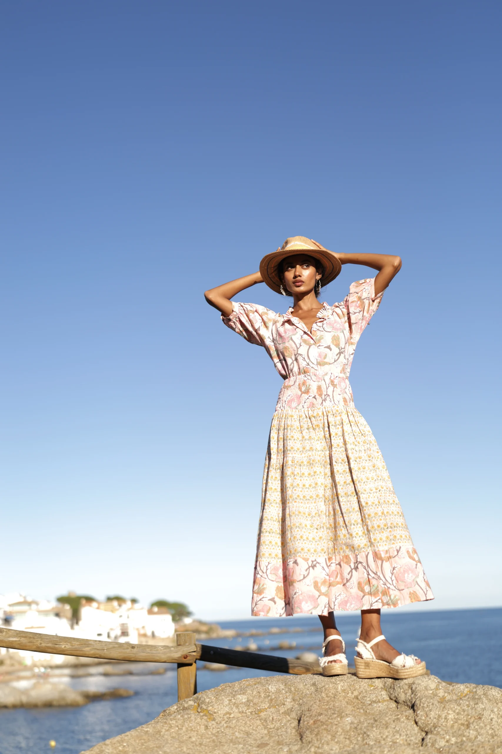 La falda larga es una oda al estilo bohemio y romántico, confeccionada en algodón ligero para brindar frescura y comodidad en cada movimiento. Su diseño fluido destaca por un estampado en tonos rosa y amarillo, con un aire artesanal y femenino. Con un corte largo y vaporoso, esta prenda es ideal para paseos junto al mar o eventos al aire libre. Combínala con blusas ligeras o tops ajustados para un look veraniego lleno de encanto y personalidad.