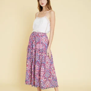 Falda larga Sila. En punto calado, color azul Mediterráneo. De corte largo. Ligeramente ajustado a tu silueta, Su ajuste suave y ligero. realza tus curvas de forma favorecedora. Con cintura elástica. Ideal para diferentes looks y diversas ocasiones. Combínala con el Top Sedna y tendrás un total look Luna Llena súper favorecedor.
