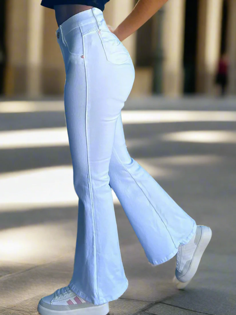Los jeans blancos acampanados levanta pompis para mujer de PDMX se han convertido en la opción número uno. Diseñados para realzar tu figura, estos jeans ofrecen un efecto levanta pompis que te dará un look increíblemente atractivo, combinando moda y comodidad en una sola prenda.