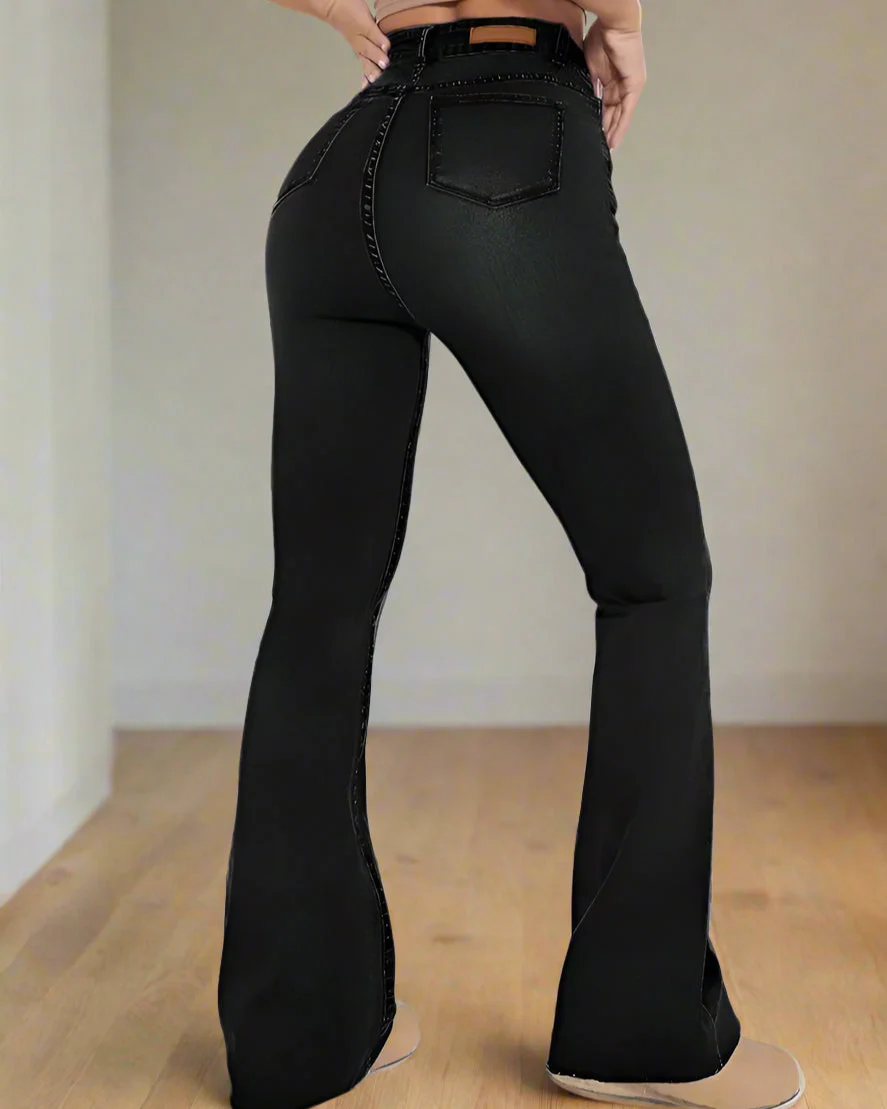 Nuestros Black High-Rise Flared Jeans representan lo mejor de la moda urbana. Su diseño único y moderno los convierte en una opción predilecta para las mujeres que buscan destacar en la ciudad.