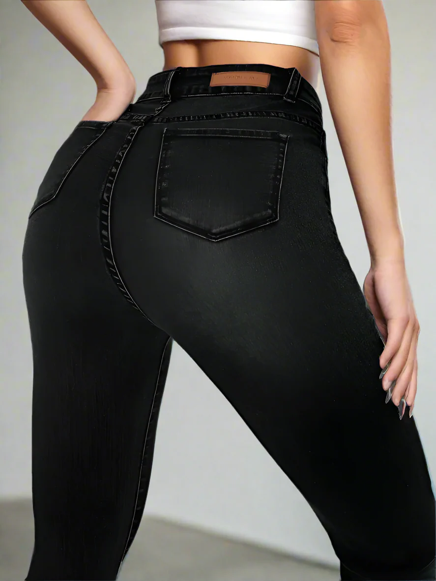 Diseñados para la mujer moderna, estos jeans combinan un tiro alto favorecedor con un elegante acabado en mezclilla negra, garantizando una silueta esbelta y sofisticada. Son la elección perfecta para lograr un look chic y contemporáneo, reflejando las últimas tendencias de moda.