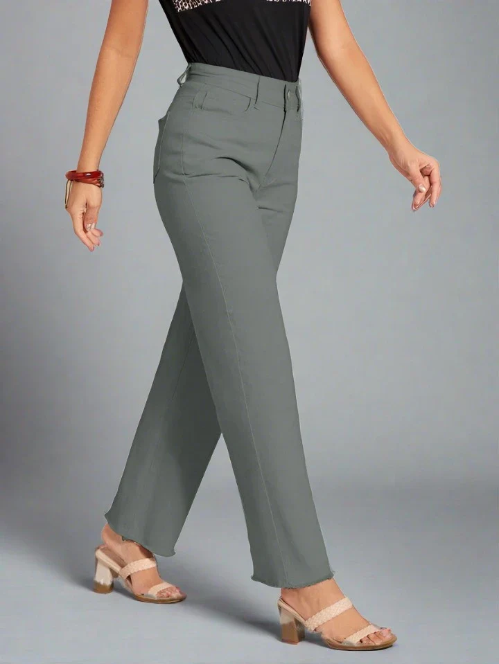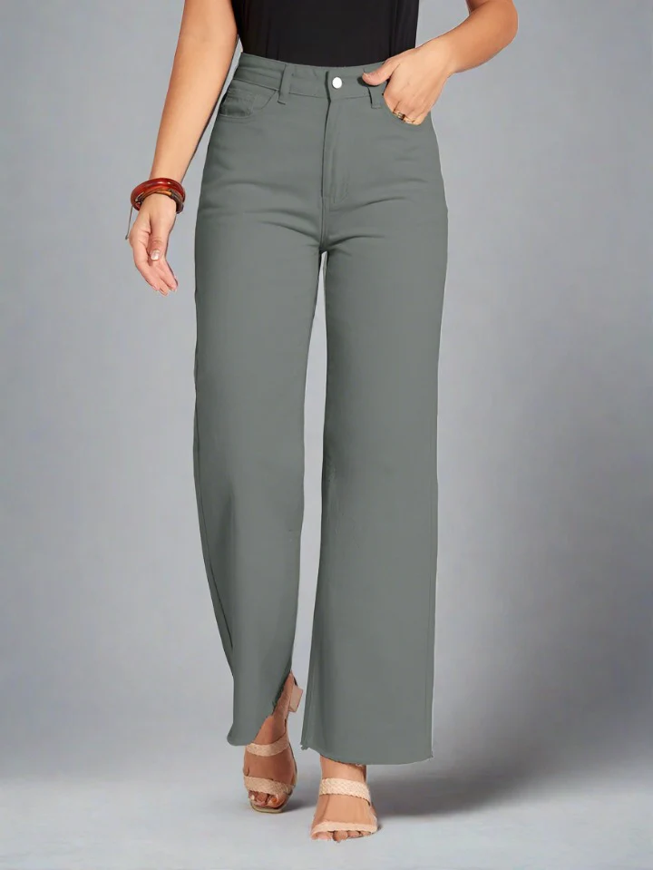 Cada detalle de estos jeans ha sido cuidadosamente seleccionado, desde su ajuste a la cintura hasta los bolsillos prácticos. El tono gris ofrece una versatilidad increíble, facilitando la combinación de colores y el diseño de prendas para crear tu look ideal.