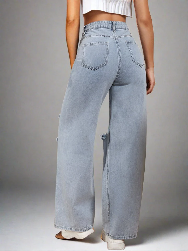 Descubre la sensación única de llevar los Jeans Rotos Wide Leg Gris Cielo, donde cada detalle ha sido pensado para ofrecerte libertad sin comprometer tu estilo. Ideales para la mujer contemporánea que valora la comodidad tanto como la moda.
