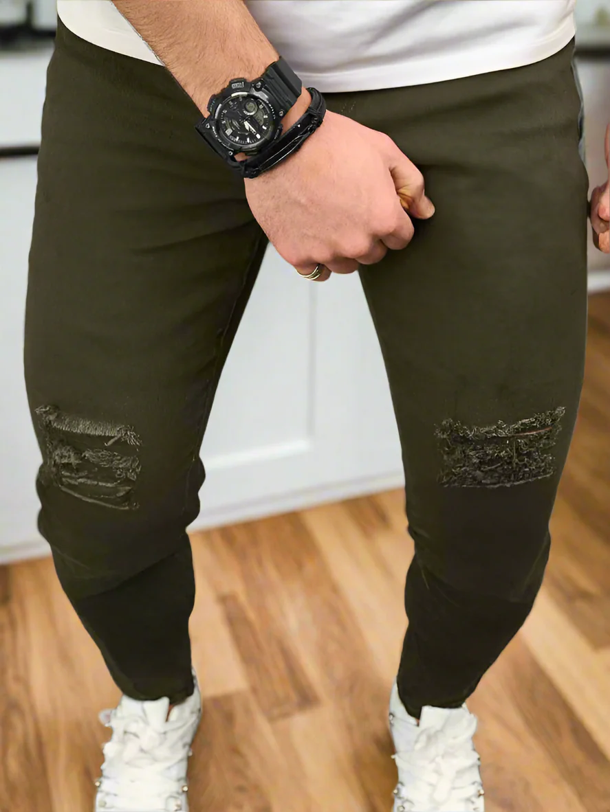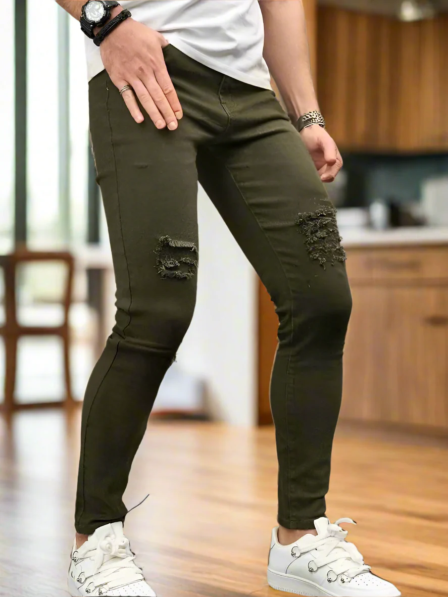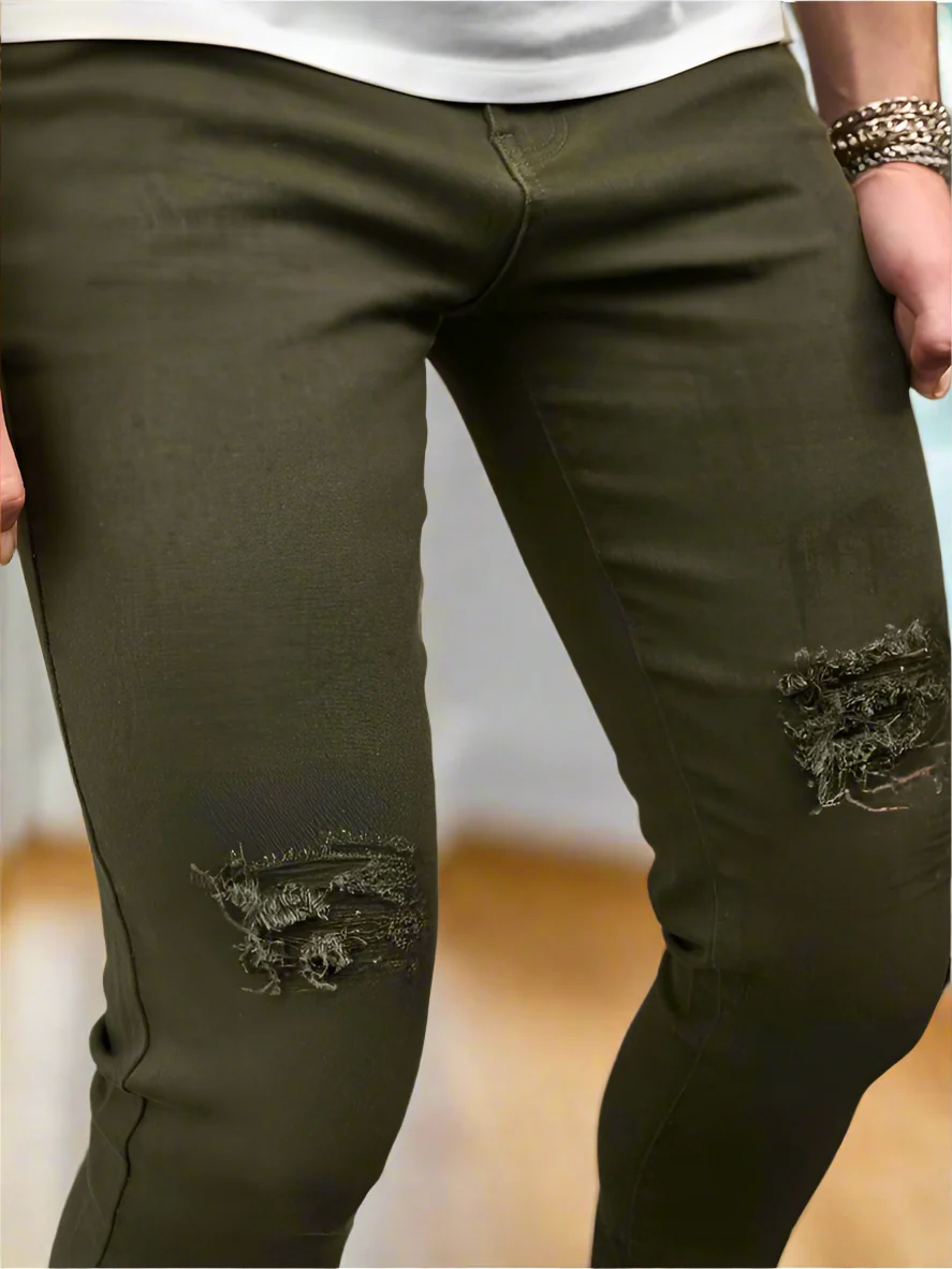 Los Jeans Verdes Skinny para Hombre de PDMX están diseñados para quienes buscan una mezcla perfecta entre moda y autenticidad. Confeccionados en mezclilla stretch de alta calidad, hecha en México, estos jeans ofrecen un corte ceñido que realza la silueta masculina sin sacrificar comodidad. Los detalles rotos no son aleatorios: cada rasgado está pensado para expresar actitud y carácter. Son ideales para un look urbano, moderno y lleno de personalidad.