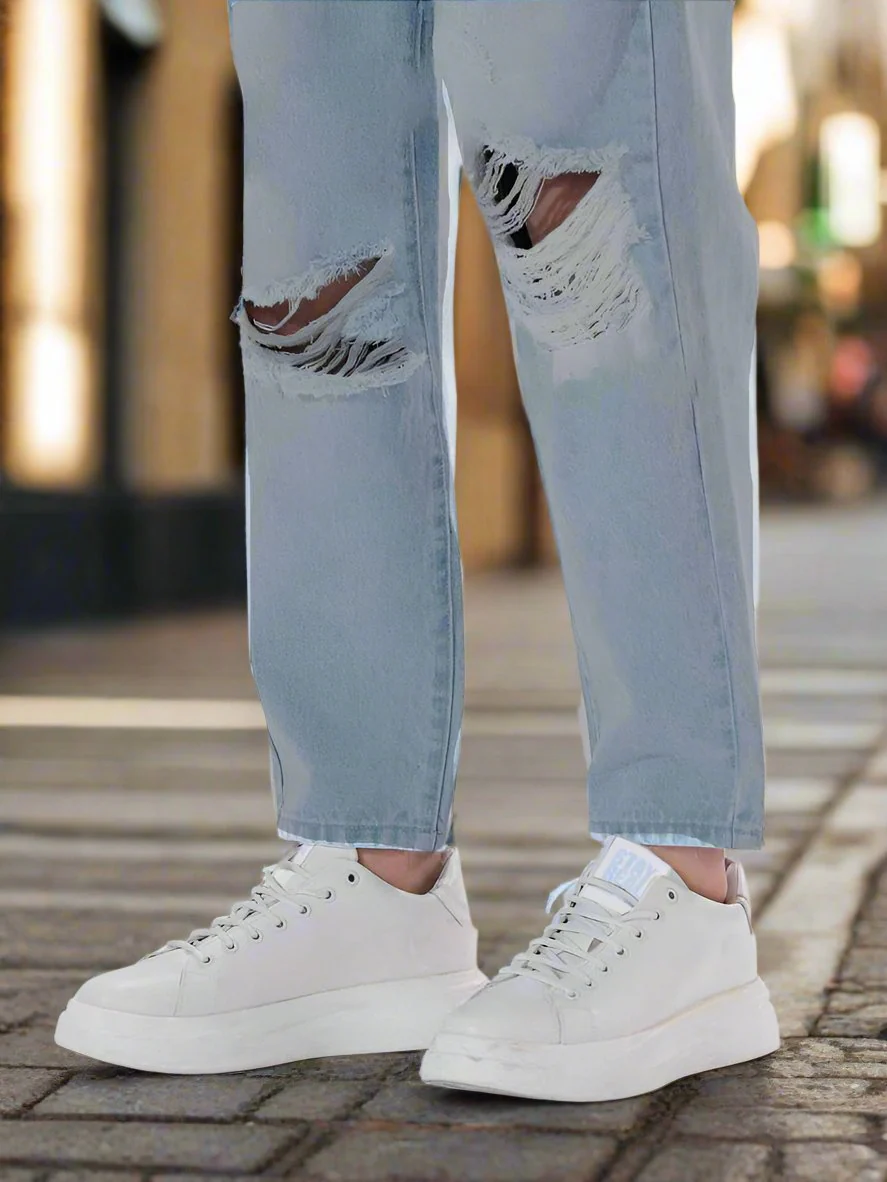 Dale un giro moderno a tu estilo con los Mom Jeans Azul Cielo de PDMX. Estos jeans, perfectos para el hombre contemporáneo, combinan comodidad y tendencia. Con detalles desgastados y rasgados, ofrecen un look único y moderno. Ideales para cualquier encuentro casual, estos Mom Jeans son un must-have para añadir un toque de frescura a tu armario masculino.