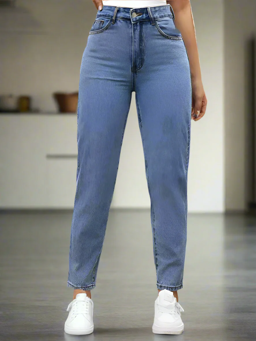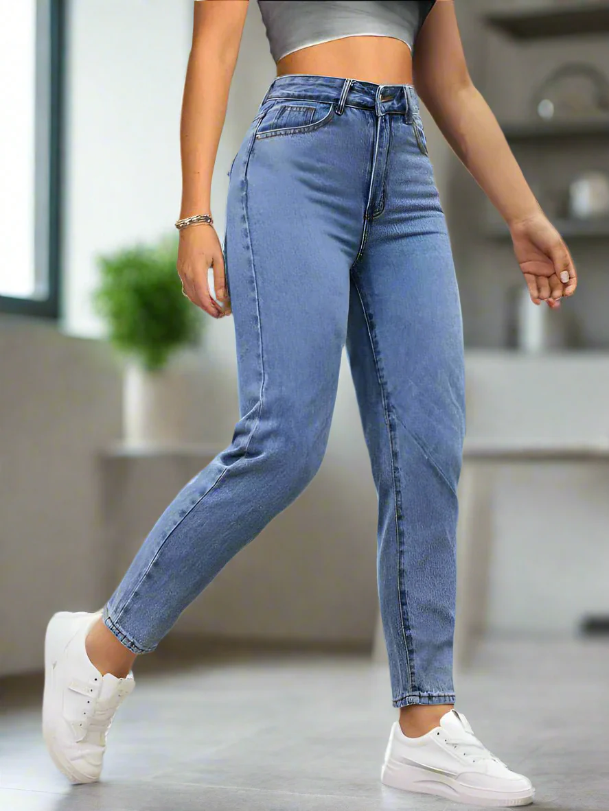 Vive la comodidad y elegancia que mereces. Nuestros MOM Jeans azules de mezclilla rígida premium están diseñados para la mujer moderna que busca autenticidad y calidad superior.