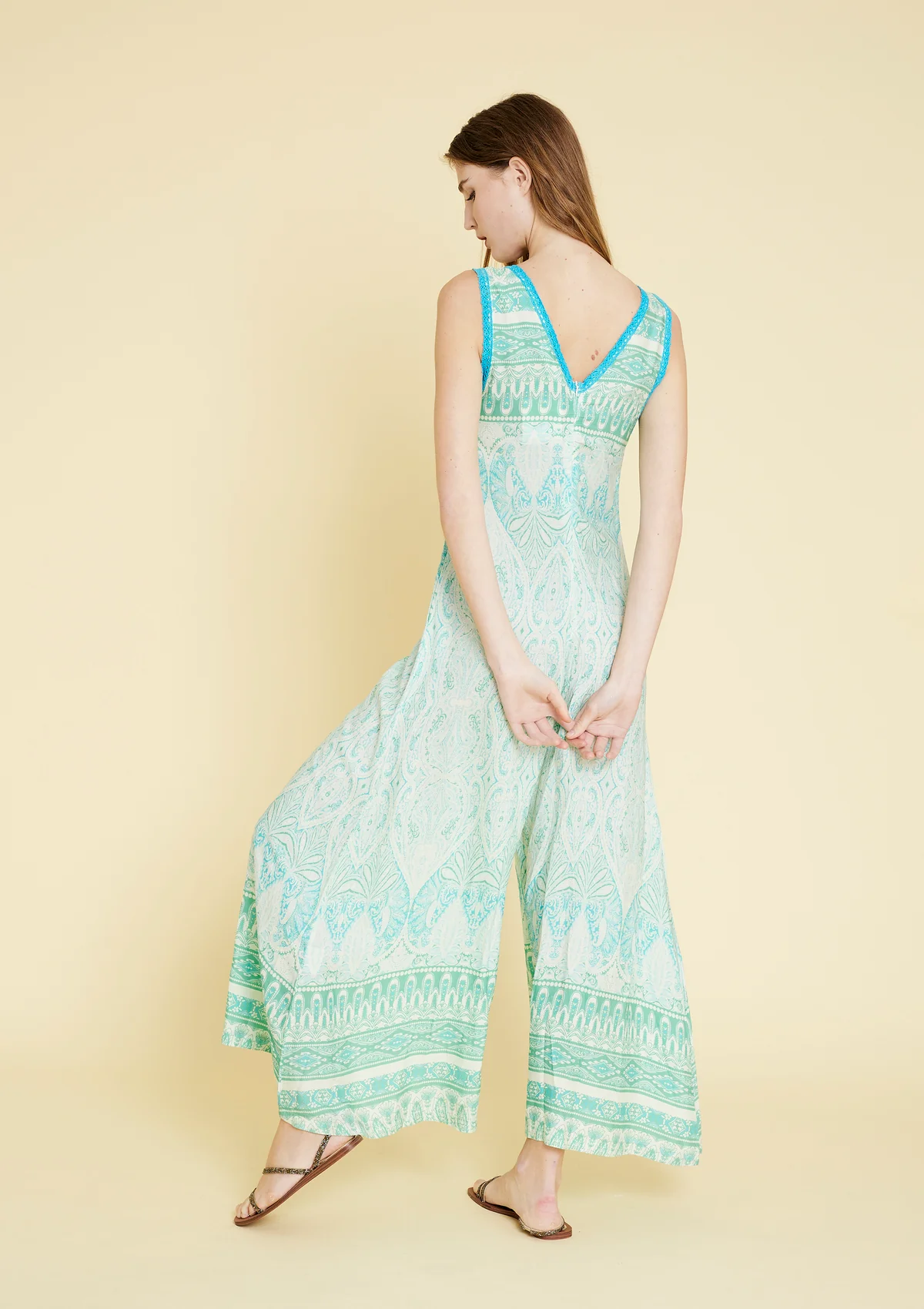 El mono largo Creta es ideal y fantástico para tus looks de verano. Lo puedes encontrar en tono anaranjado o acqua. Ligero y fresco. Escote en V en la parte de delante y posterior. Sin mangas. Ribete a contraste. Cierre con cremallera. La parte inferior apuesta por una caida dinámica y amplia. Es super cómodo y fácil de llevar.