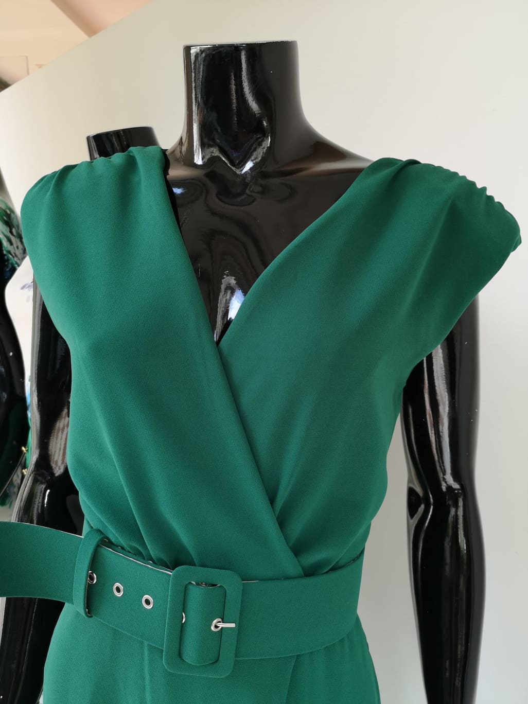 Escote delantero cruzado y espalda cerrada con cremallera invisible.