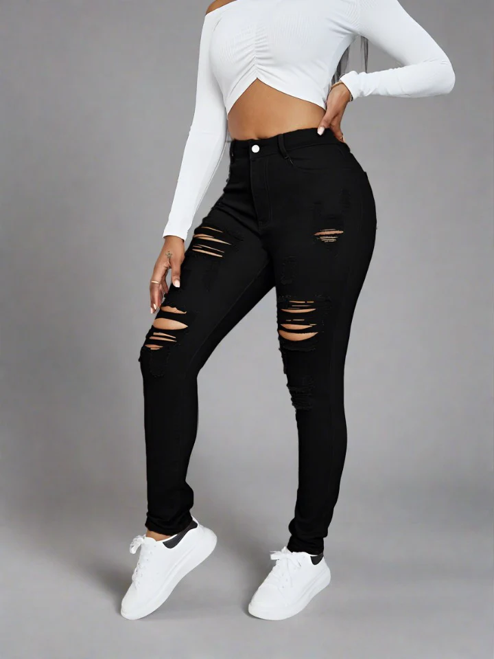Descubre los Vaqueros Negros Desgastados de Talle Alto, perfectos para la mujer moderna. Nuestros jeans mom en México combinan estilo y comodidad sin igual. Fabricados con el mejor denim, estos pantalones de mezclilla son ideales para cualquier ocasión, destacando por su diseño elegante y versátil.