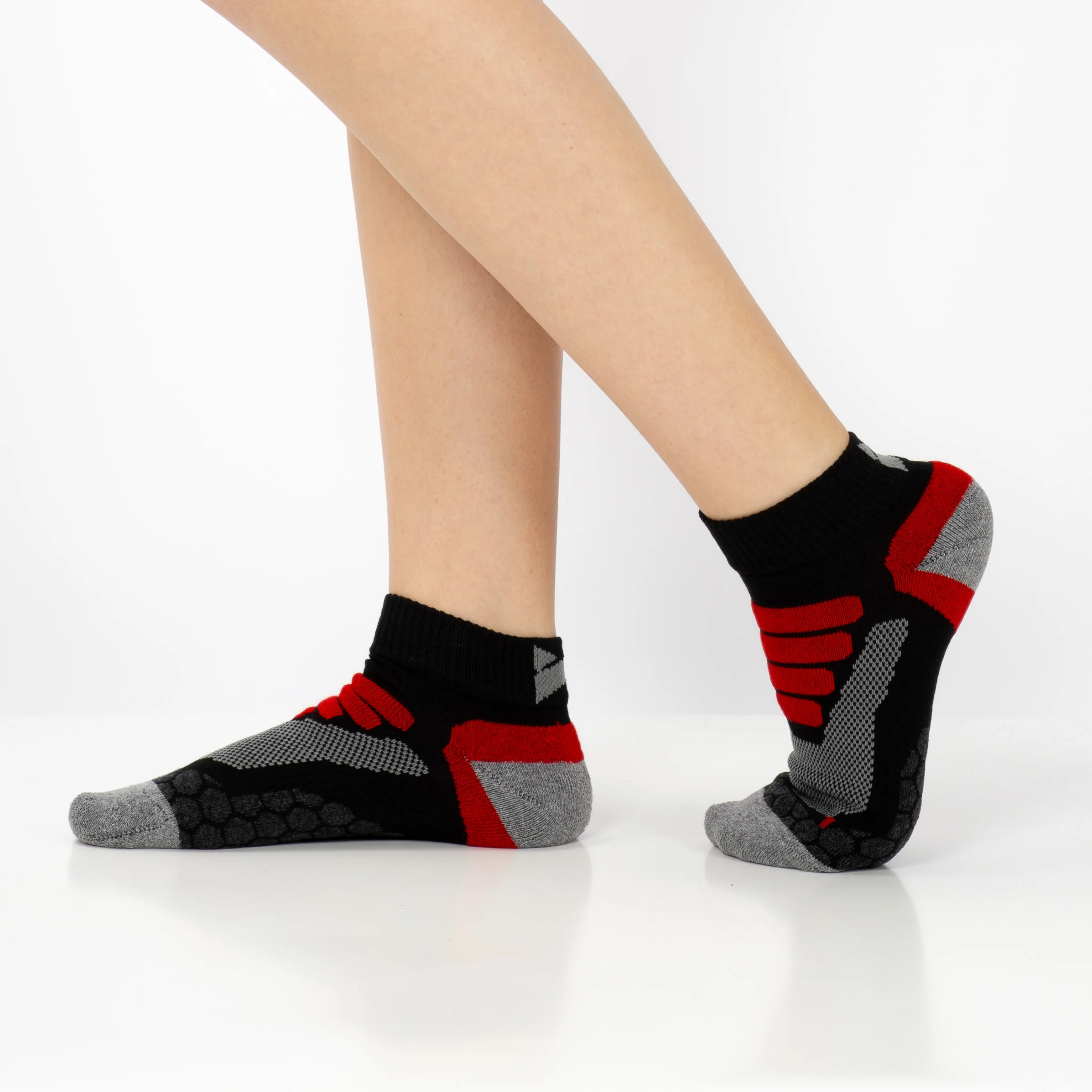 Gracias a la tecnología Coolmax y al efecto de ventilación de estos calcetines, tus pies se sentirán cómodos, frescos y secos durante todo su uso. La óptima distribución de la presión también proporcionará un apoyo adecuado a tus pies.