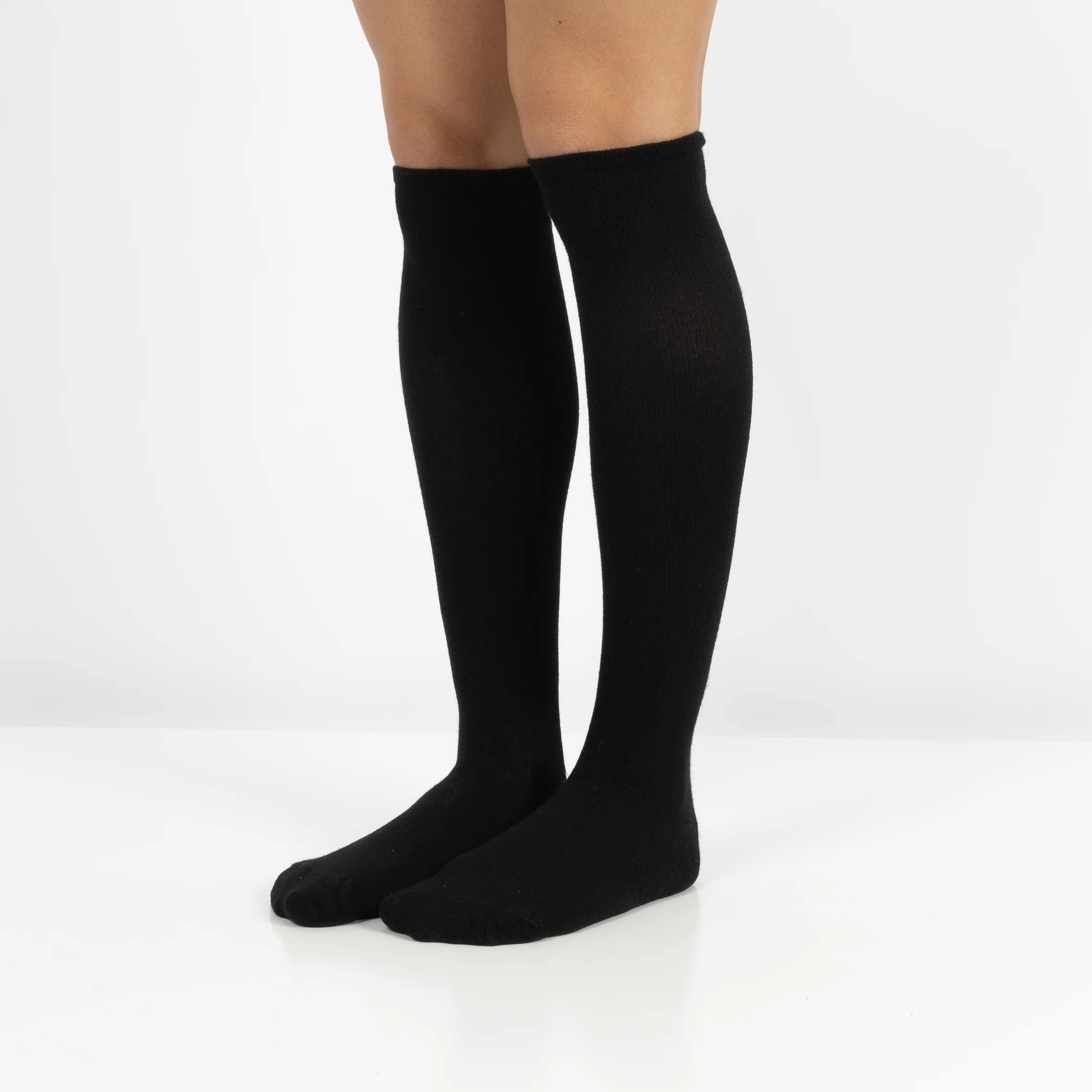 Disfruta de estos calcetines de viaje de tejido modal con un alto nivel de comodidad gracias al puño extralargo con estructura de canalé y la puntera remallada a mano.
