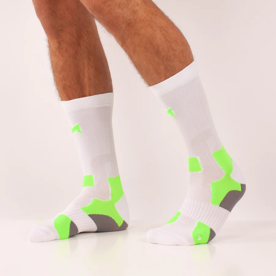 Calcetines anatómicamente moldeados al pie, proporcionando una protección adicional y reducción de puntos de presión. Con propiedades absorbentes y de secado rápido, mantienen los pies secos y frescos a lo largo de todo su recorrido.