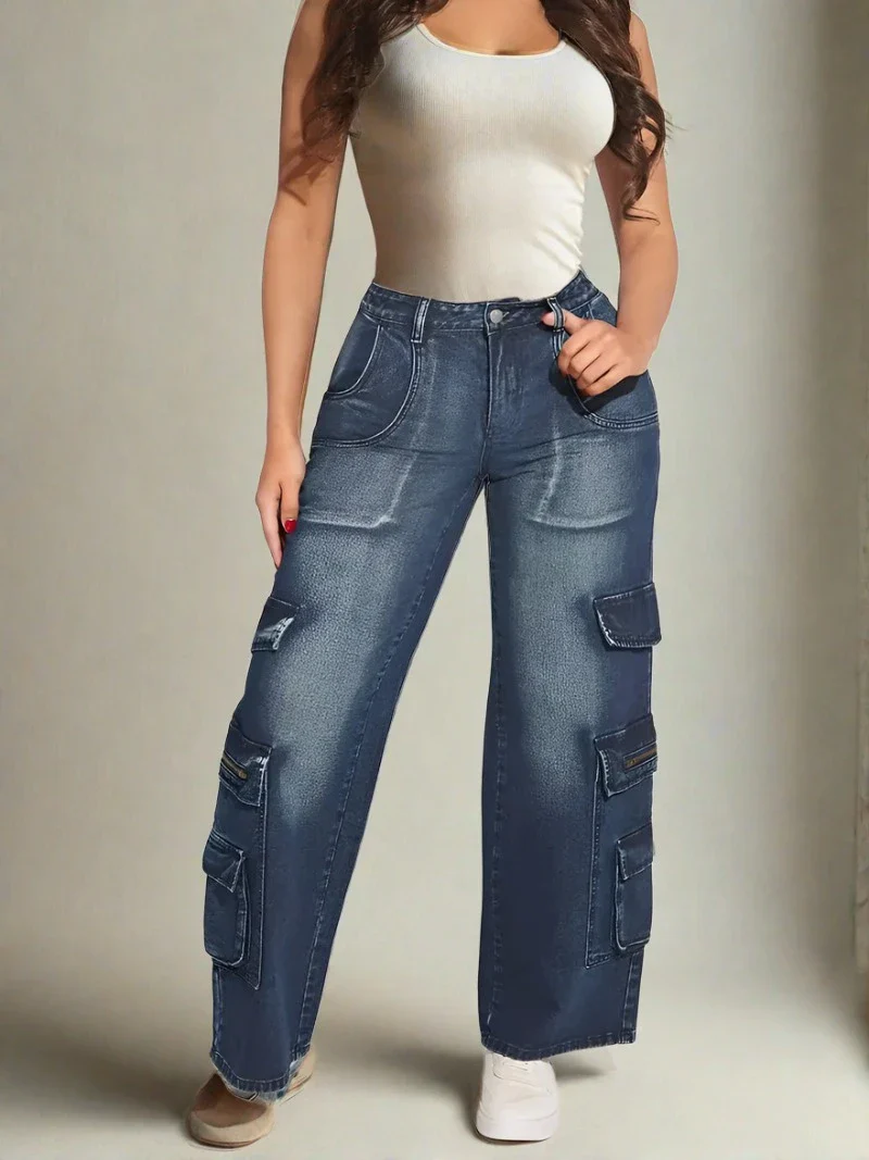 Descubre la elegancia rebelde con nuestros pantalones cargo para mujer en azul oscuro. Estos jeans destacan por su diseño único, combinando funcionalidad y moda. Con bolsillos cargo prácticos y detalles desgastados para un toque moderno, representan una fusión perfecta de tendencia y comodidad.