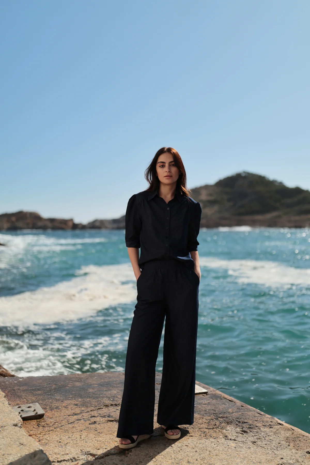 Comodidad, ligereza y elegancia en un solo diseño. El pantalón Olivia está confeccionado en un tejido ligero, con una silueta fluida que estiliza sin esfuerzo. Su cintura elástica se adapta a ti y te acompaña en movimiento, mientras el corte recto y amplio aporta un aire relajado y sofisticado. Perfecto para el día a día o para llevar en la maleta de vacaciones, combina igual de bien con una blusa estructurada que con una camiseta básica. Un fondo de armario atemporal con espíritu mediterráneo.