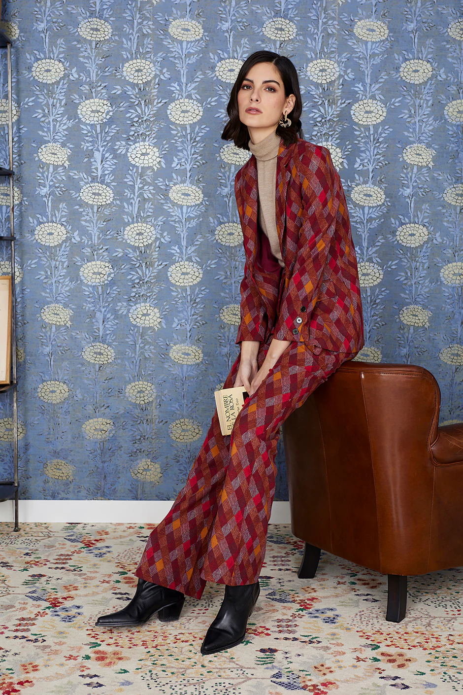 Pantalón largo Letizia. Estampado geometrico en tonos teja. De corte recto y pernera ancha. Cierre con botón y cremallera. Lleva tu talla habitual. Combinalo con el blazer Noelia!