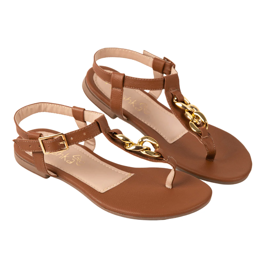 Nos encantan nuestras Sandalias Bela, pues su Color café y su hebilla dorada se complementan perfectamente para dar un toque elegante a tu look. Las sandalias 3 puntadas están en tendencia y son el diseño ideal para aquellas mujeres que su pie es muy delgado o muy grueso y no pueden usar sandalias de tiras o de ancho fijo.