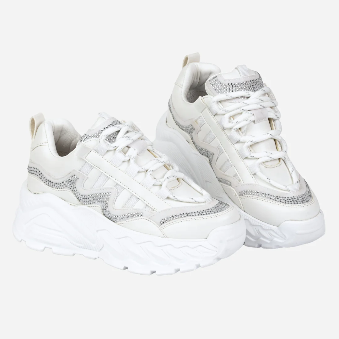 Estos tenis no son solo un calzado, son una declaración de estilo para la mujer que conoce su valor y no teme destacar. Cada detalle ha sido meticulosamente adornado con piedras brillantes pegadas a mano, transformando estos tenis en una obra de arte digna de los eventos más especiales. Diseñados para la mujer arriesgada que ama ser única, estos tenis reflejan exclusividad y sofisticación, perfectos para quien busca brillar y ser admirada en cada paso que da.