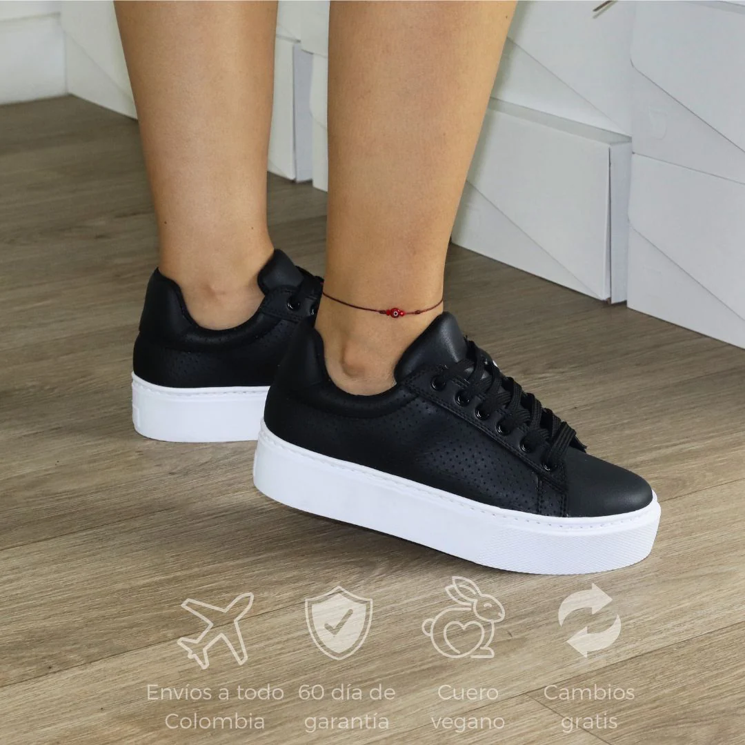 Tener un par de tenis negros es una inversión esencial en cualquier armario. El color negro es atemporal y versátil, por lo que puedes combinar fácilmente con cualquier outfit que desees. Además, el color negro oculta los daños o manchas con el tiempo, manteniéndolos frescos y limpios por más tiempo.