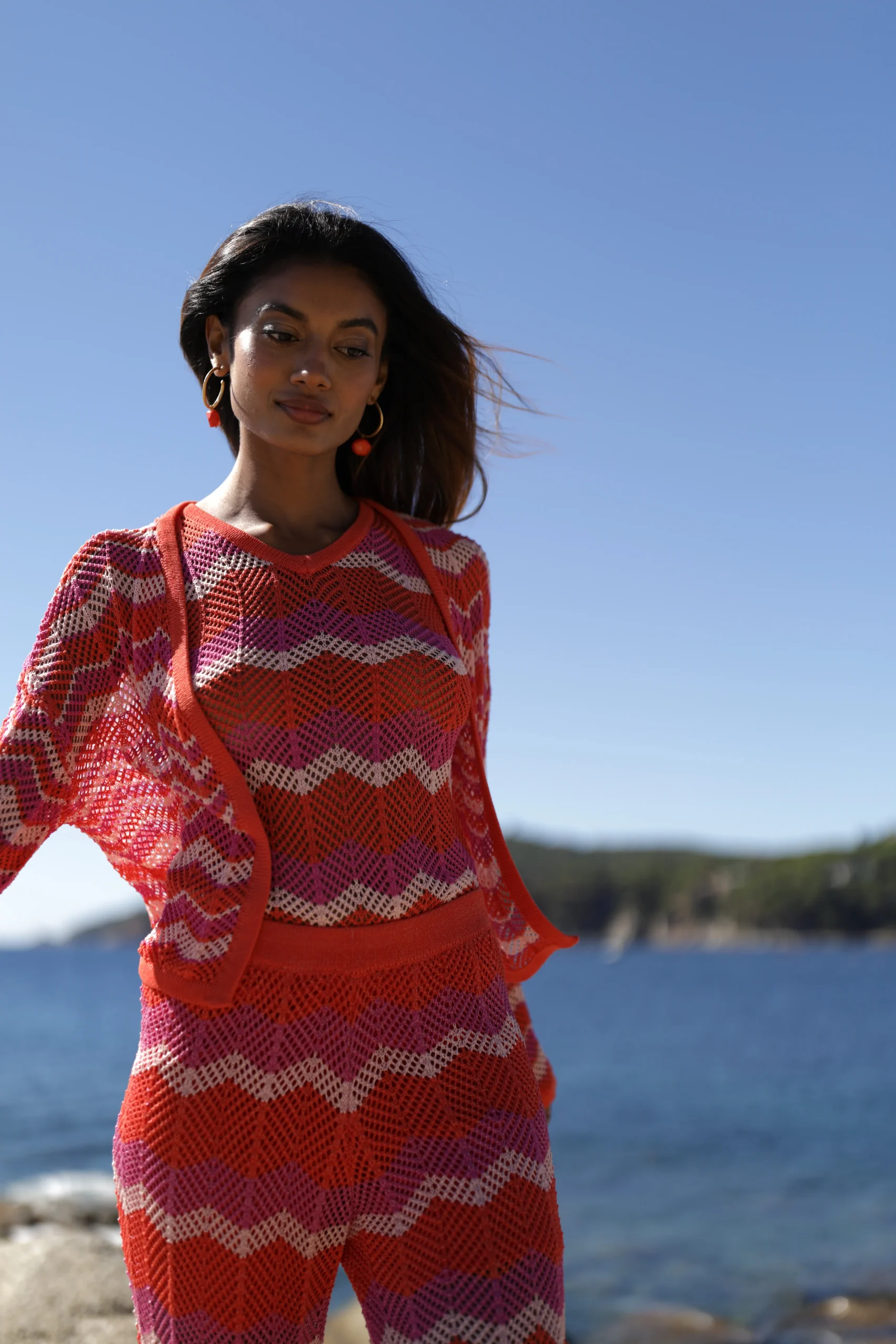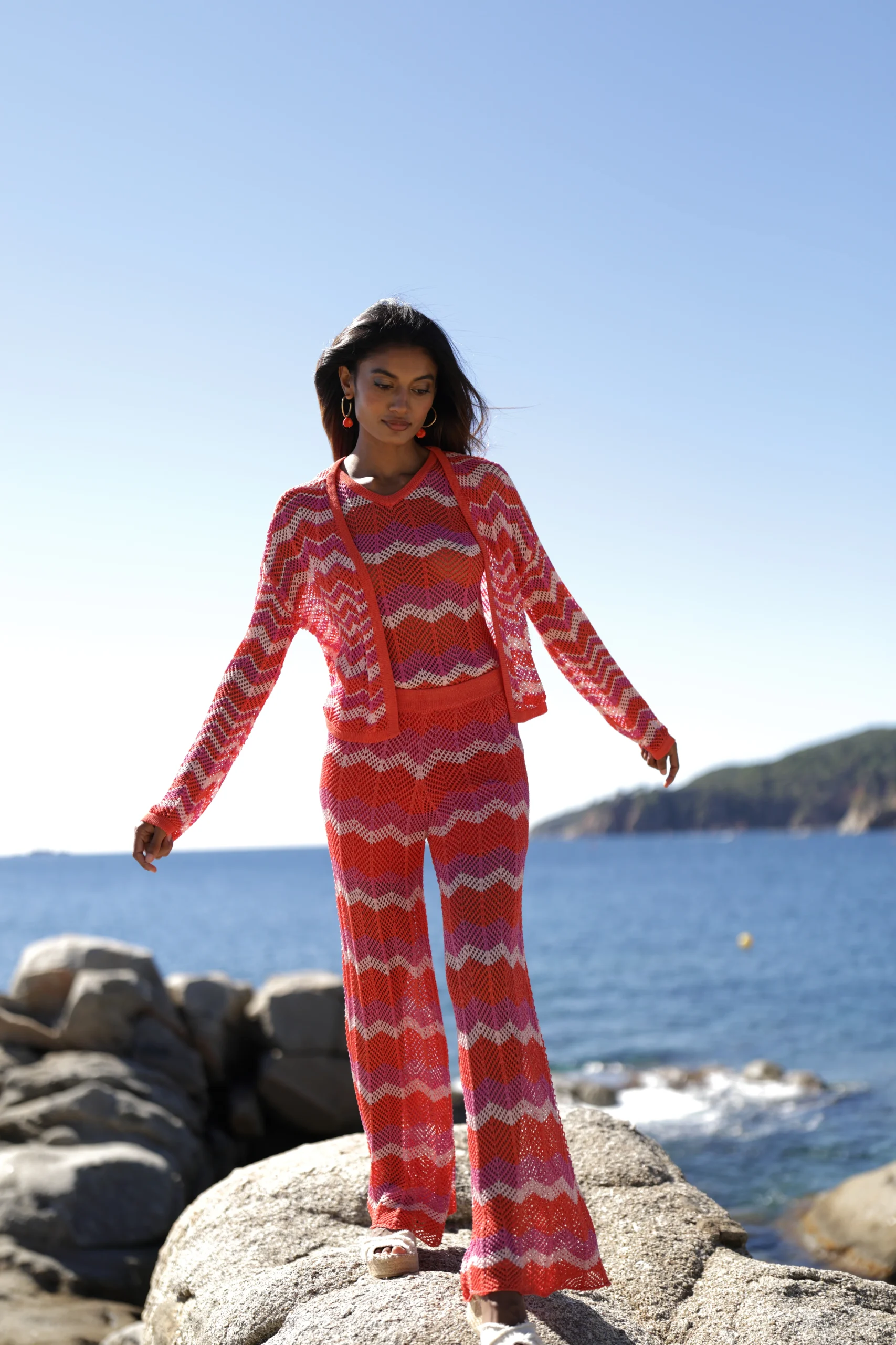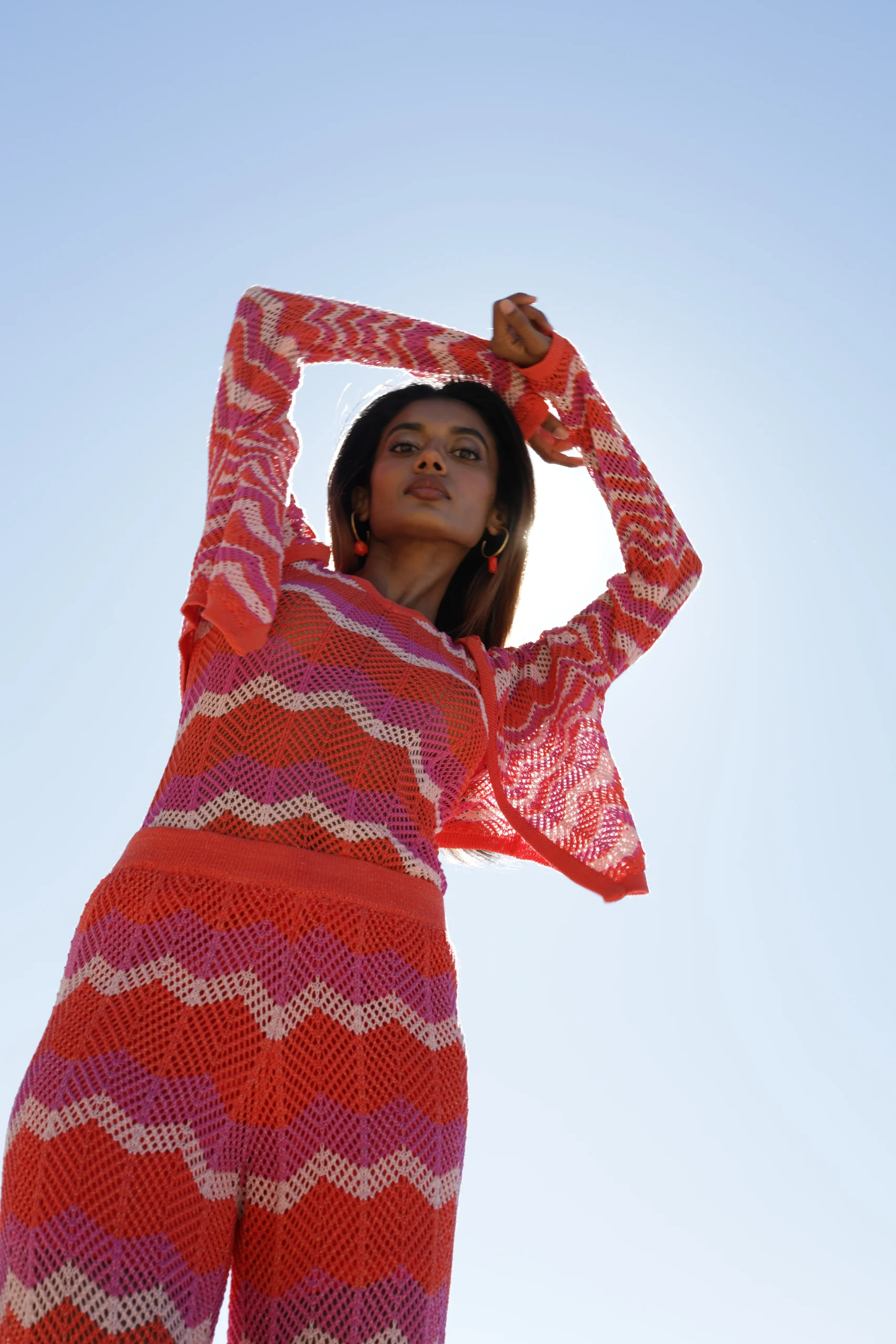 Top abierto de punto calado en tonos fucsias, ideal para el verano.