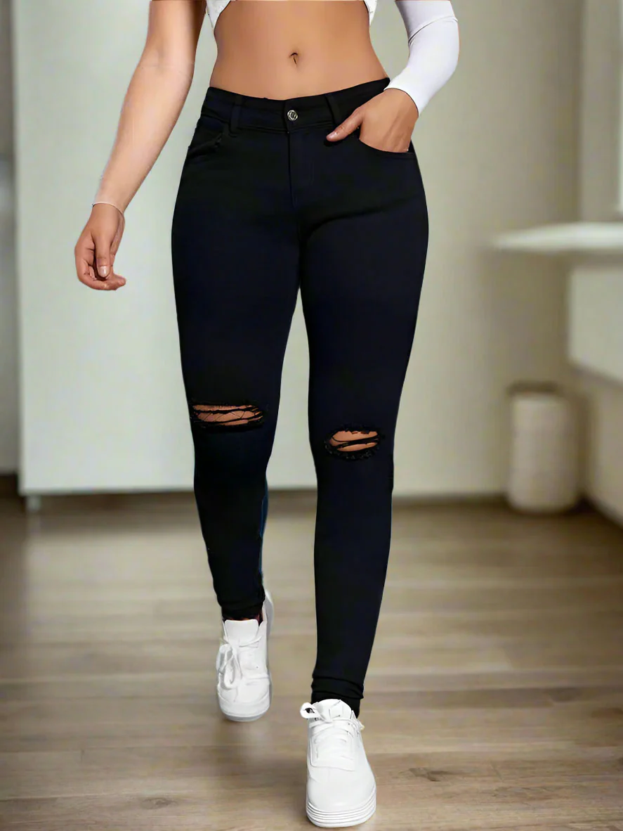 Vaqueros Pitillo Rotos Mujer Negro: Estilo Punk-Rock en PDMX