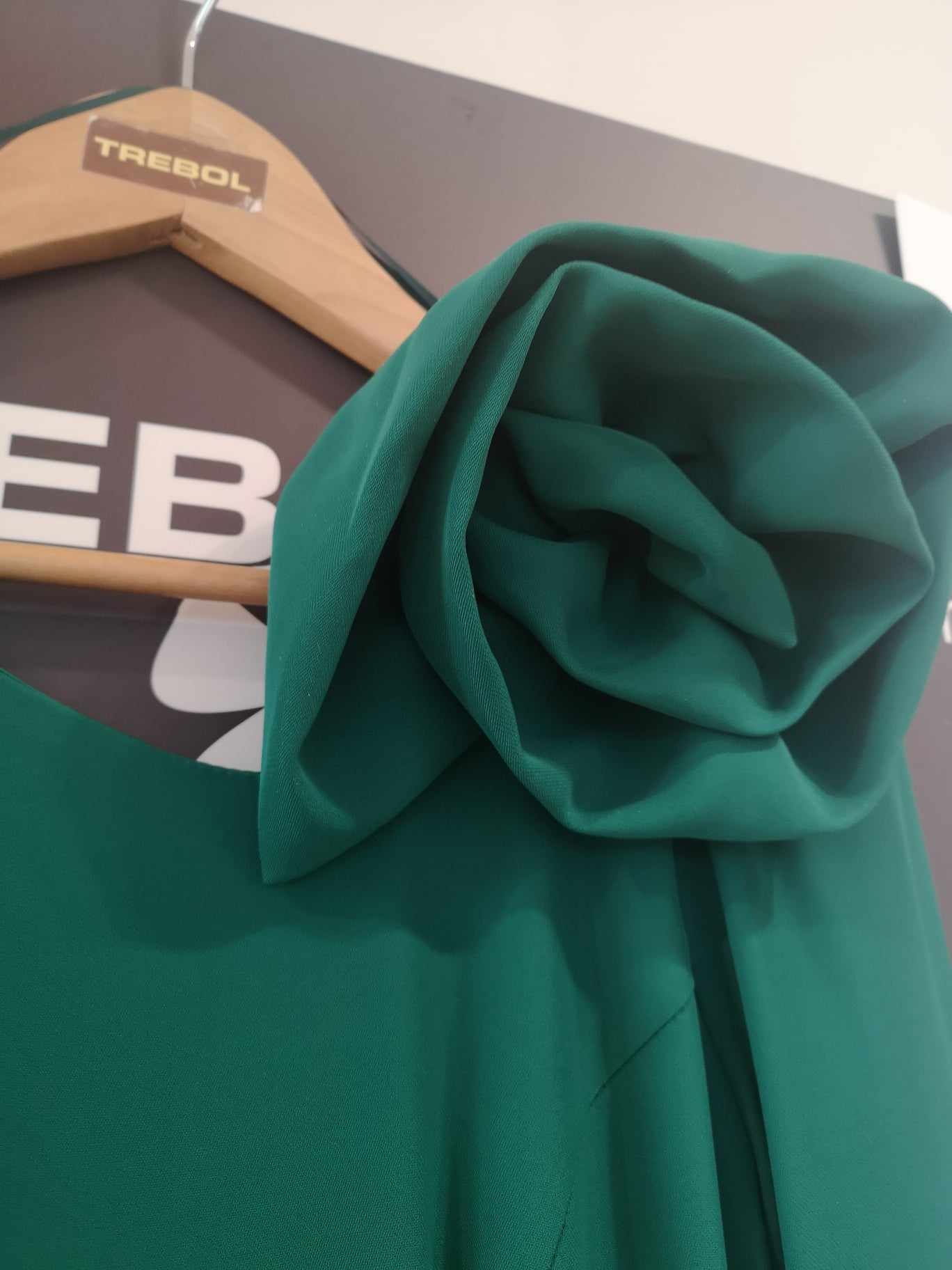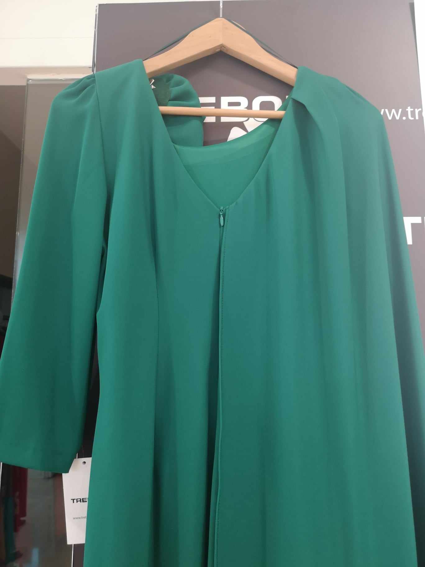 Con una capa en manga (posibilidad de desmontar) y una flor en el hombro (incluida)