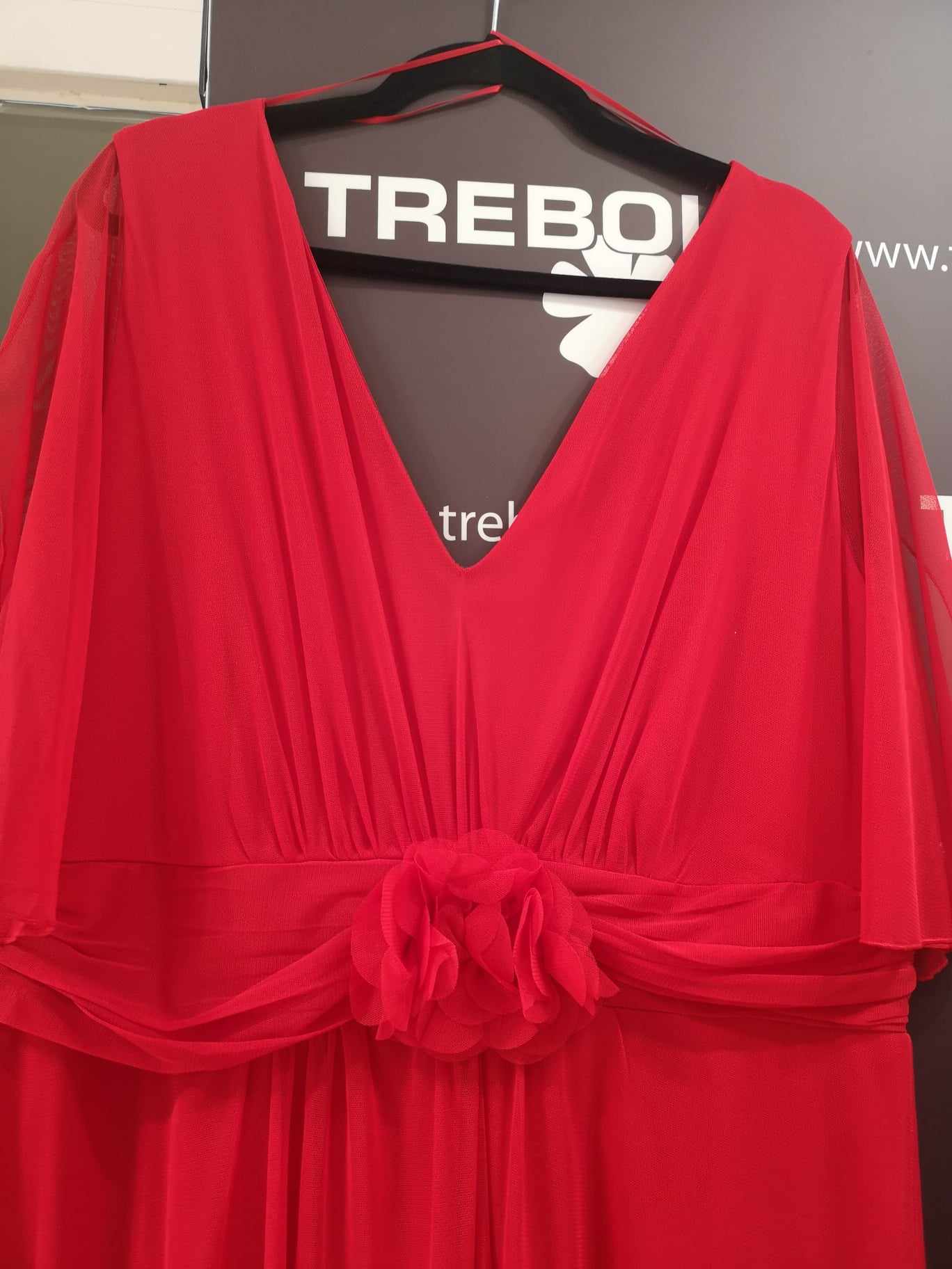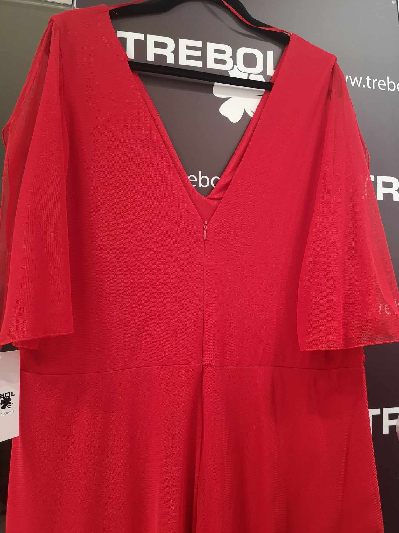Nos parece todo un acierto sus manguitas de tul transparentes que se dejan caer hasta el codo.