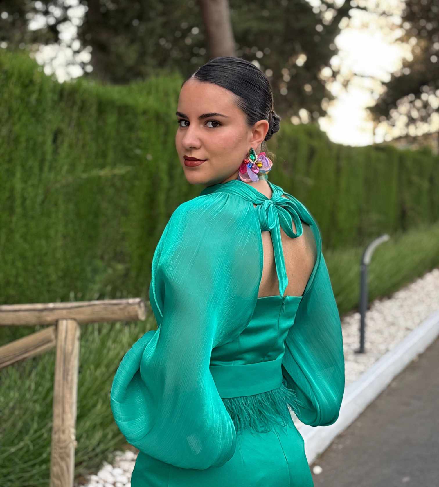 Manguitos cerrados en la parte de atrás del cuello con una lazada. Confeccionado en tejido de gasa cristal (100% poliéster).