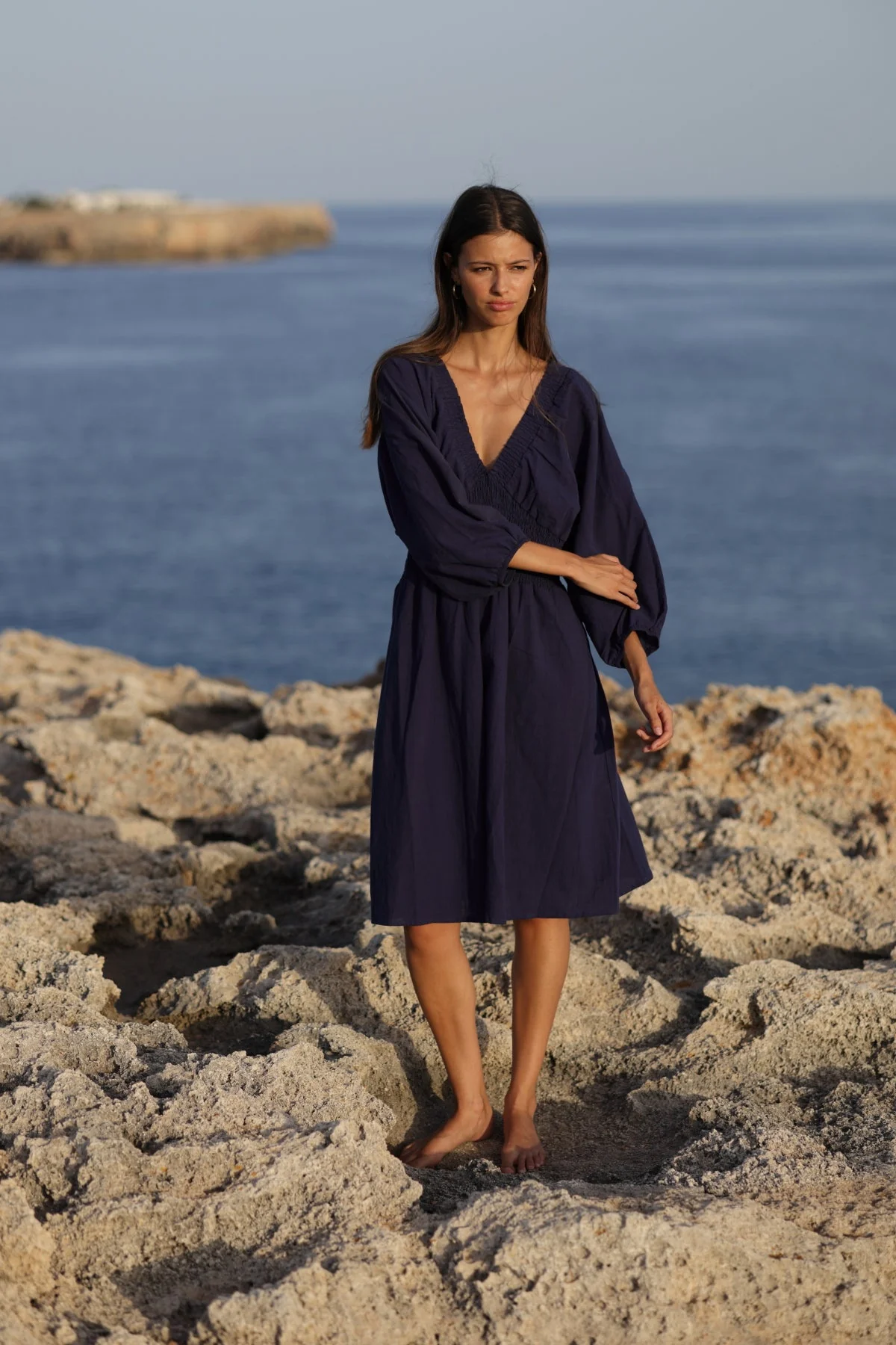 El vestido Edith en tejido color liso es ideal para un look casual! De corte midi, tiene un favorecedor escote en V con fruncido que se extiende hacia la cintura, creando una silueta esbelta y femenina. La falda de caída libre aporta fluidez y movimiento, mientras que las mangas largas y amplias, terminadas en un delicado fruncido, añaden un que bohemio y elegante. Sigue tu talla habitual. Lo tienes disponible en dos colores azul y acqua! Elije el tono que mejor se adapte a tu estilo !