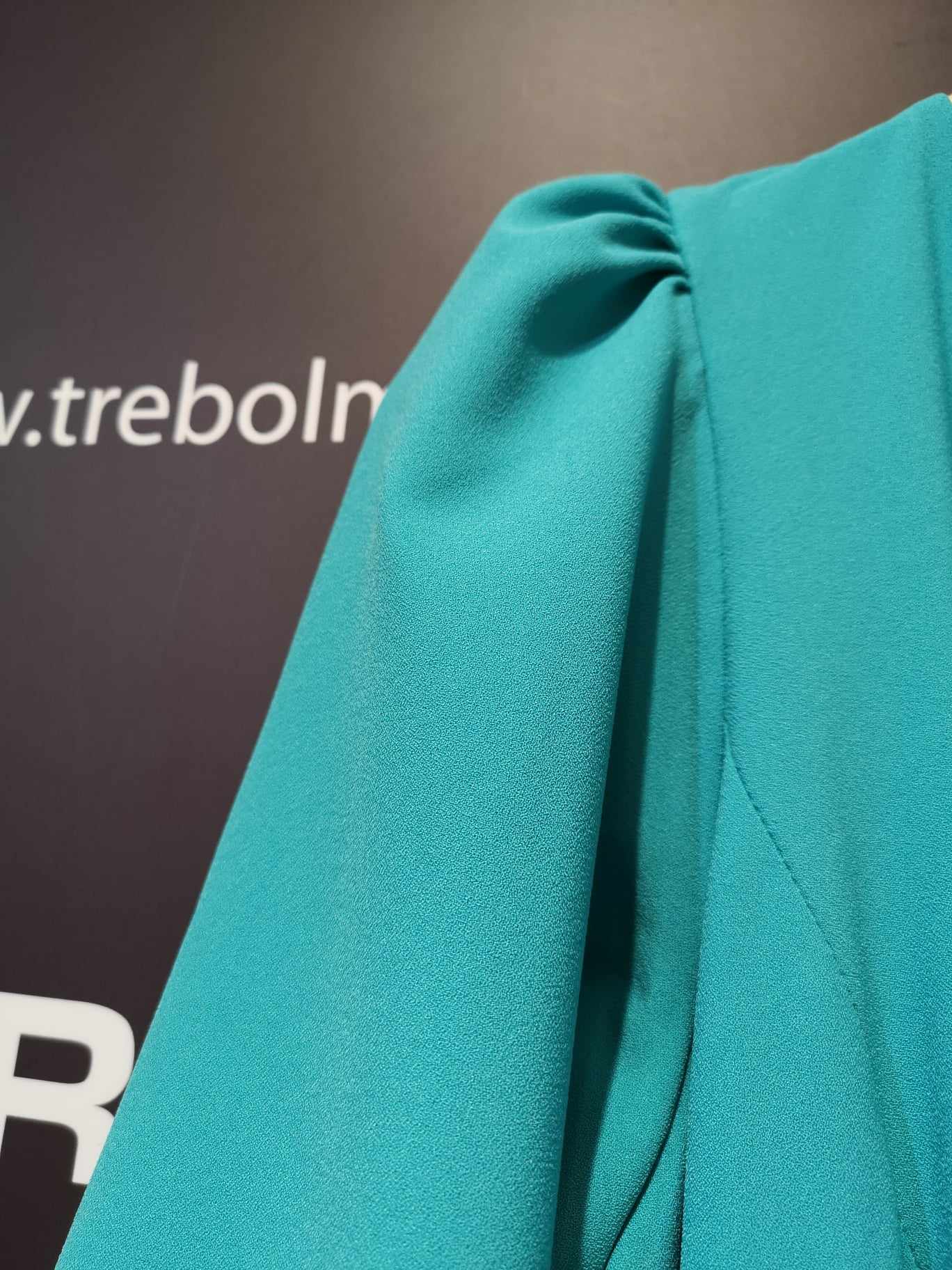 Nos encantan sus mangas 3/4 con hombros rizados.