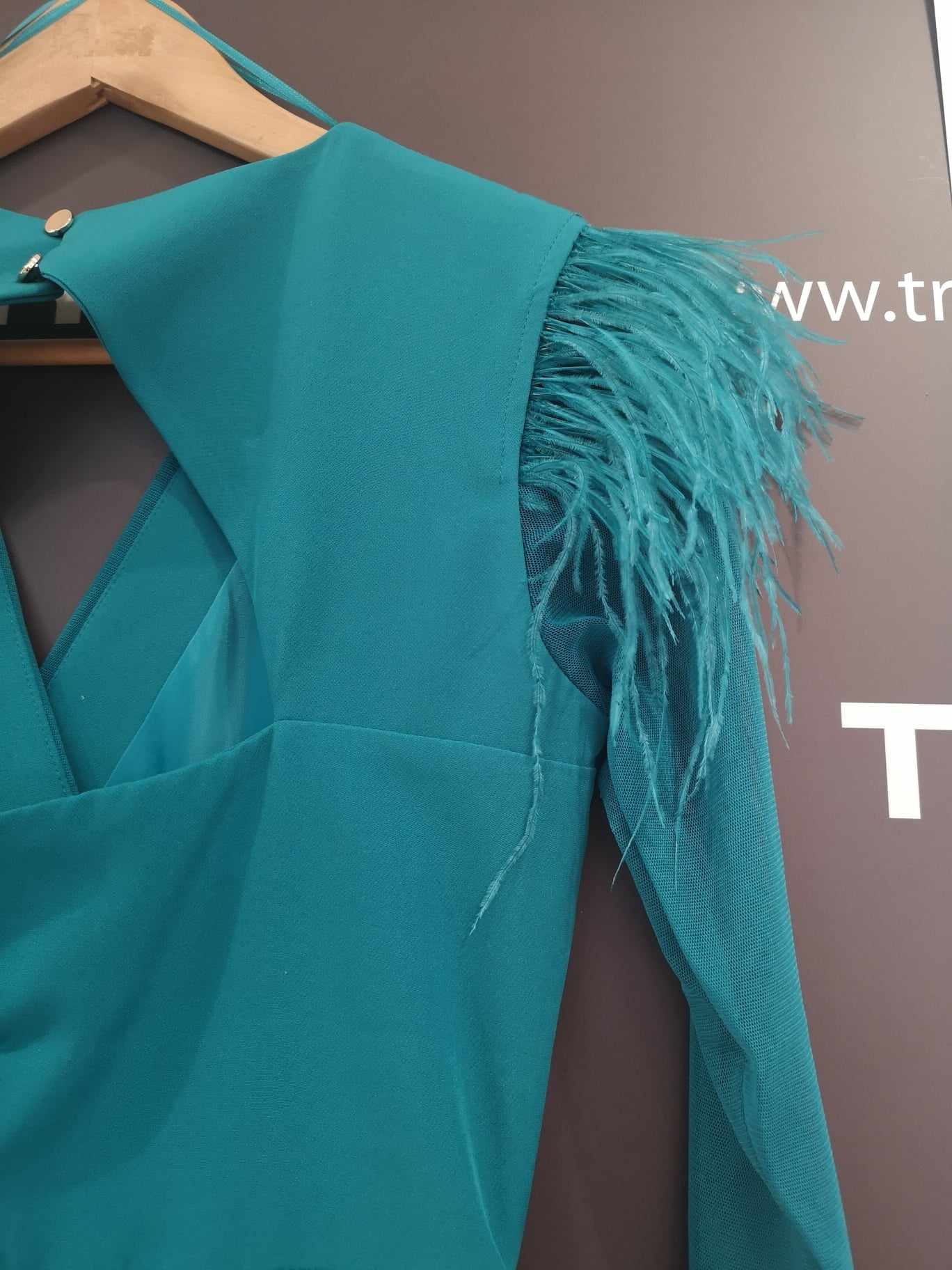 Plumitas en los hombros para darle un toque diferente.