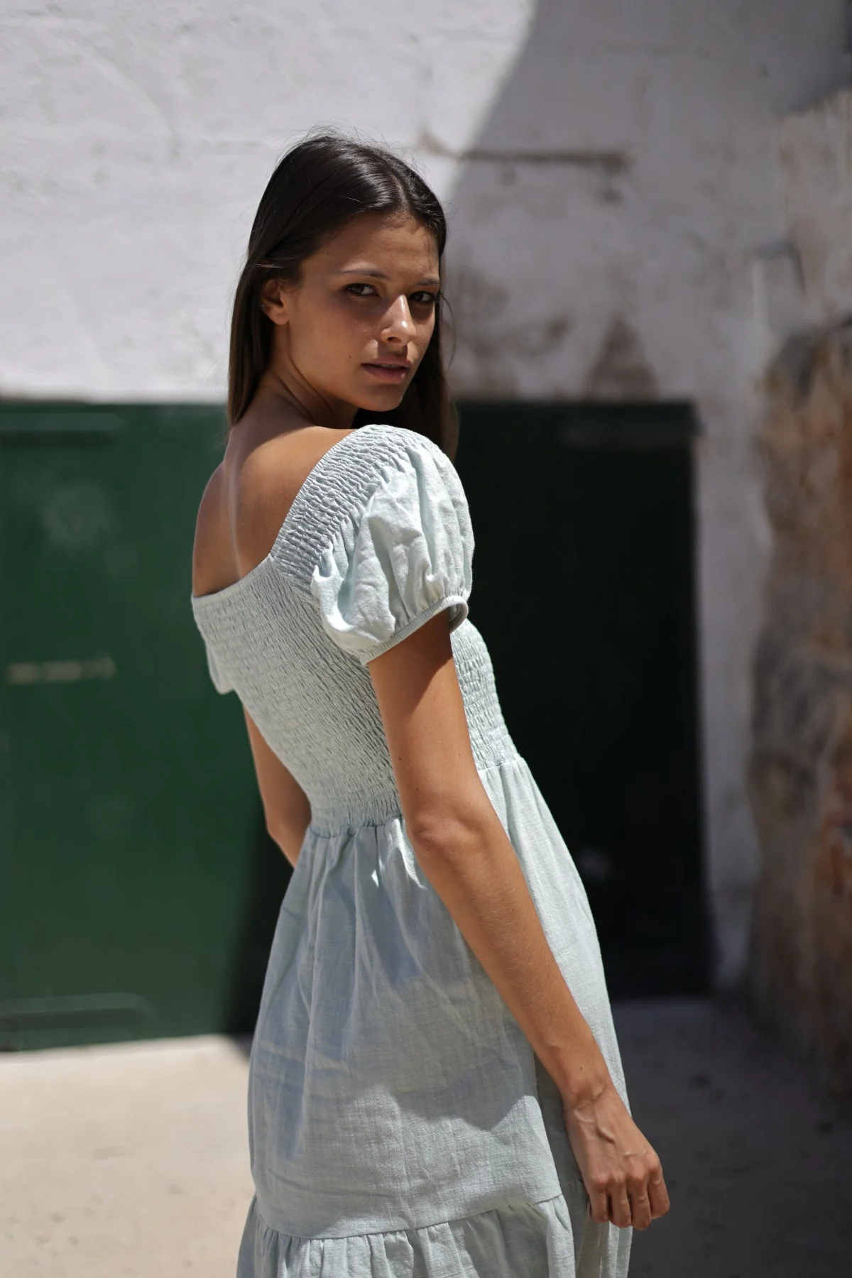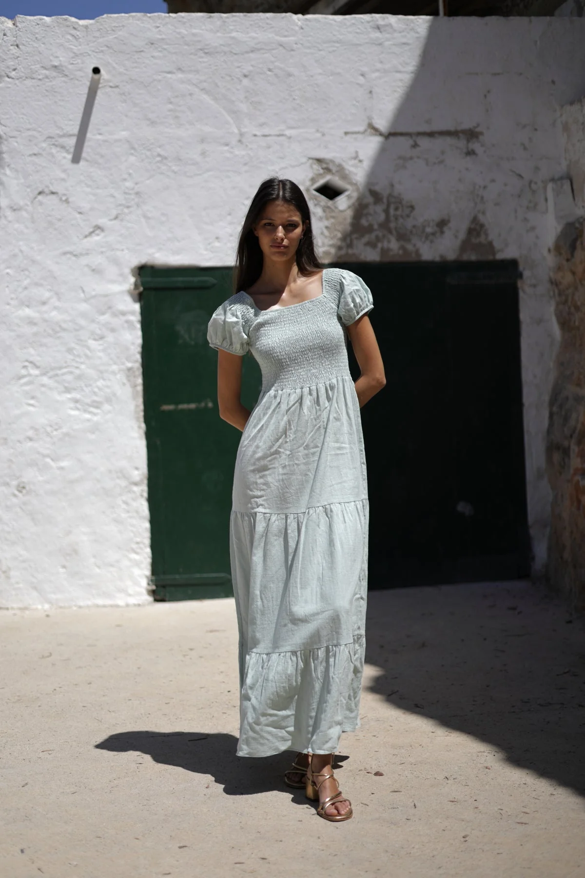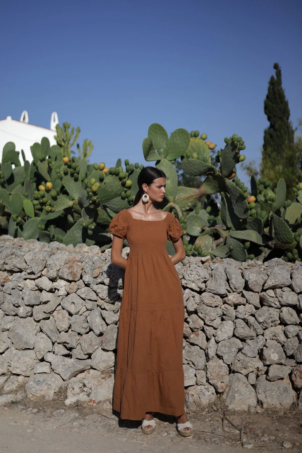 El vestido Iciar en color liso es la combinación perfecta de comodidad y elegancia. Su cuerpo fruncido se adapta a tu silueta realzando tu figura de manera estilizada y favorecedora. La manga corta ligeramente abombada con frunce , añade un toque romántico permitiéndote llevarlo de manera clásica o con los hombros al descubierto para un look más sensual y veraniego. Su falda larga de caída libre con volantes aporta movimiento y fluidez. Lo tienes disponible en tres tonos. Elije el color que mejor se adapte a tu estilo!