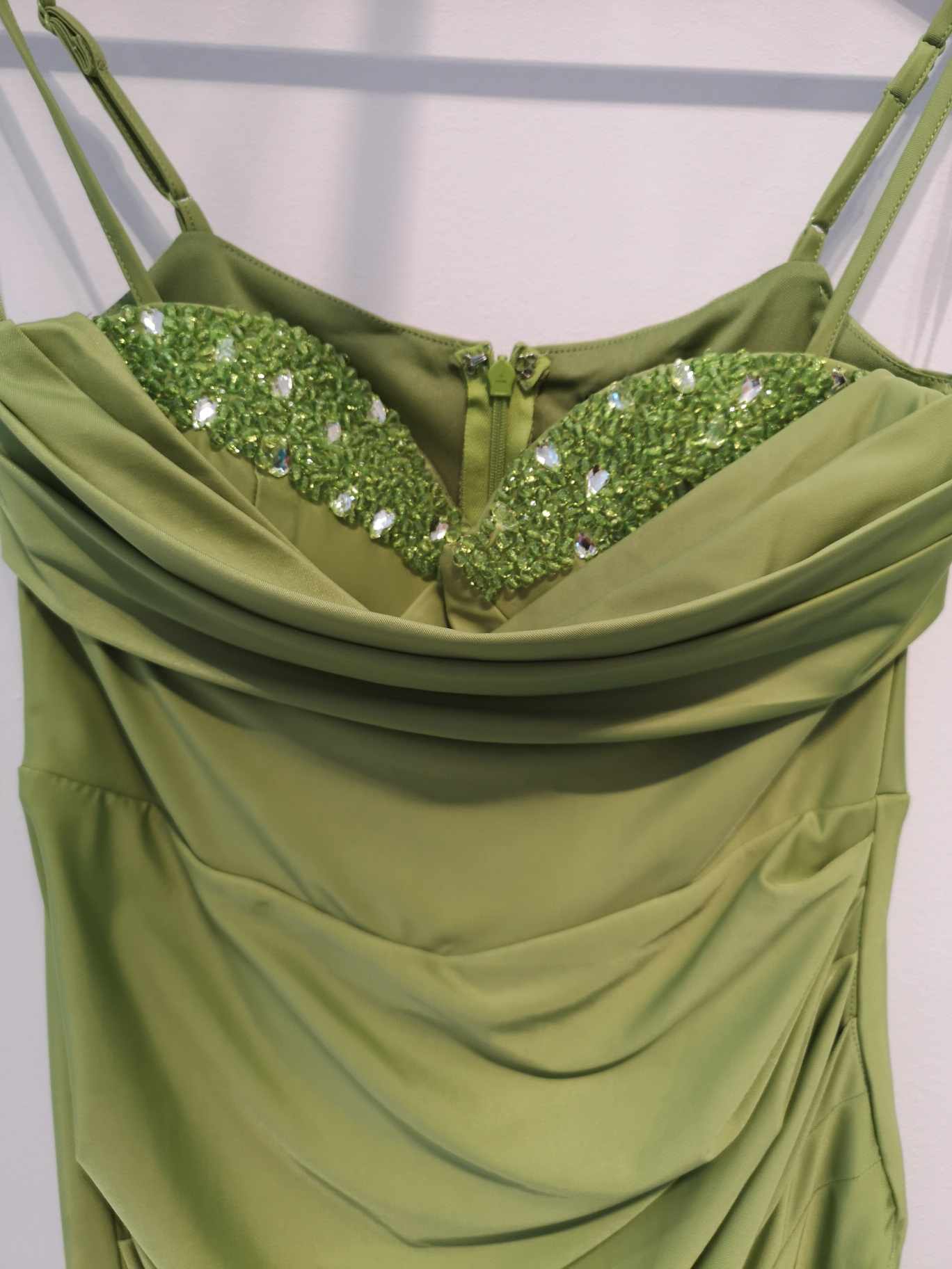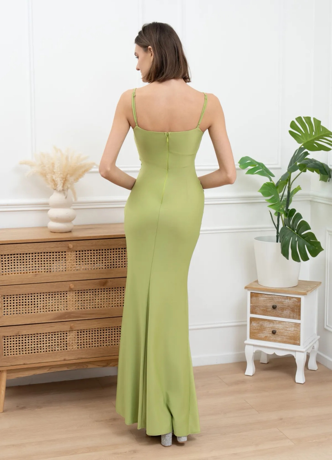 Destaca por sus pedrerías en el escote delantero.