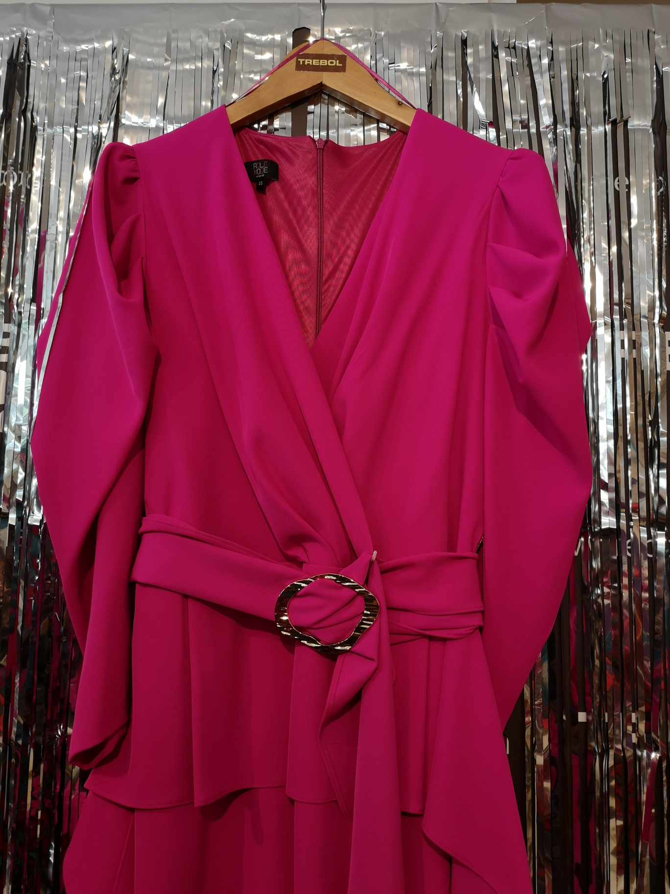 Escote delantero cruzado y espalda cerrada con cremallera invisible.