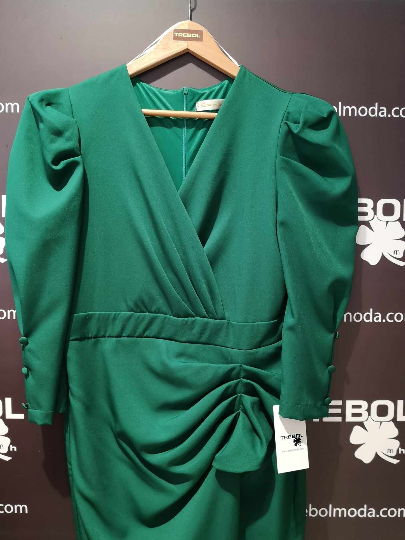 ¡Un modelo que nos vuelve locas! Su escote delantero en pico, su cintura drapeada y su falda midi con abertura lo convierten en un vestido muy #fashion.