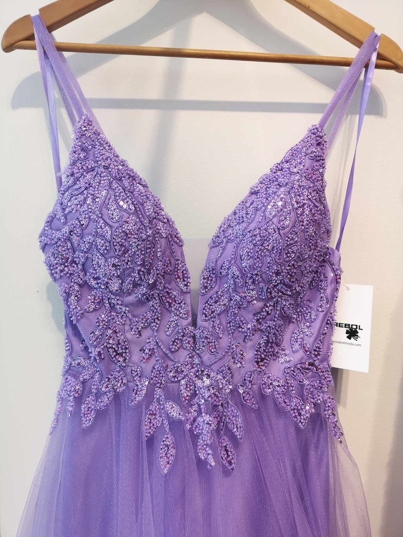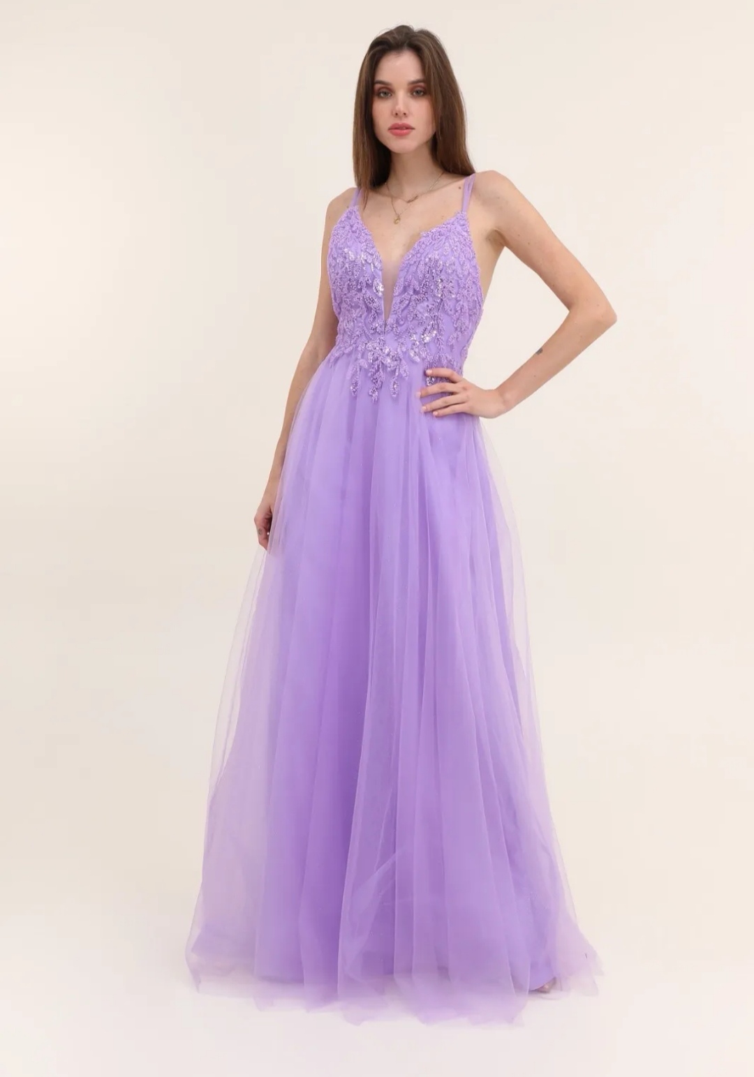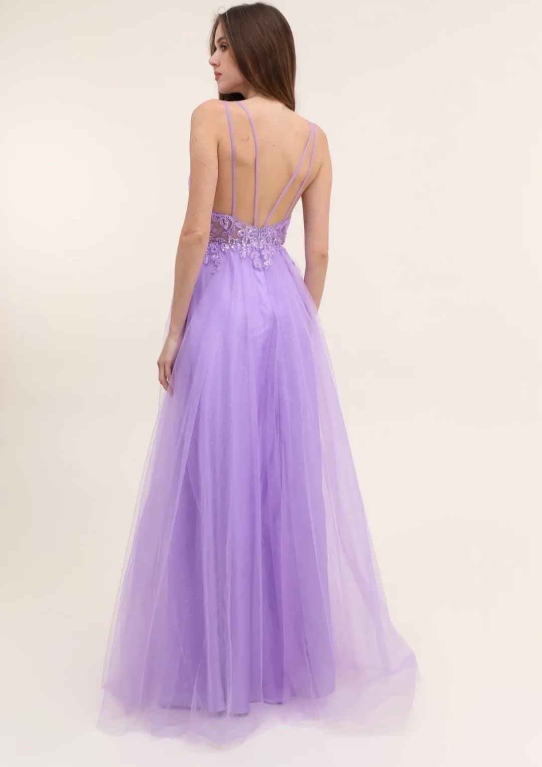 Su cuerpo forrado de pedrería y su falda de tul ilusión lo hacen un vestido único y fantástico.