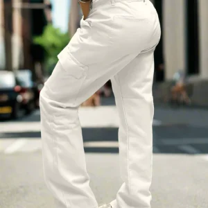 Pantalones Cargo Color Blanco Mujer con Bolsillos