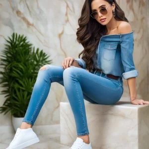 Jeans Azul Clasico Mujer De Mezclilla Ajustados