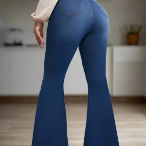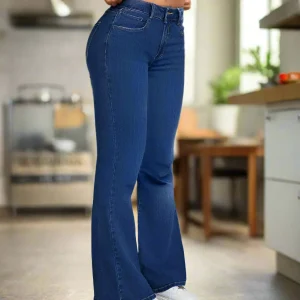 Jeans Campana Azul Rotos con Levantamiento de Glúteos para Mujer