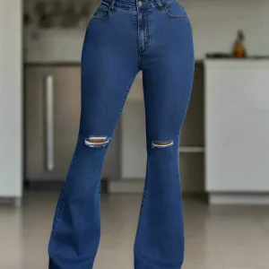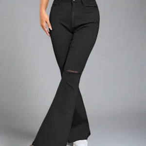 Jeans Campana Negros Rotos con Levantamiento de Glúteos para Mujer