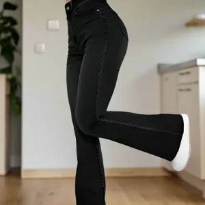Jeans Campana Negros con Levantamiento de Glúteos para Mujer