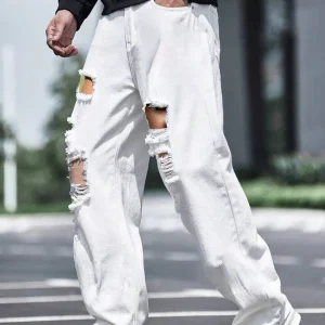 Baggy Jeans Hombre Oscuro Blancos Rotos